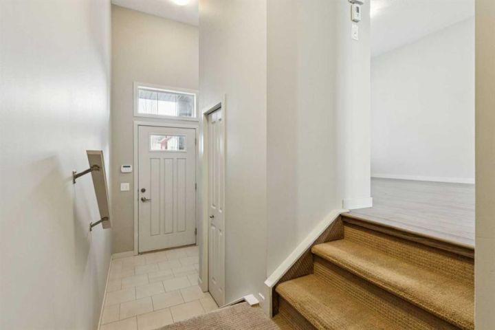 Welcome to this beautiful 3-bedroom, 2.5-bathroom townhome with an attached garage. This bright home features an open-concept main floor with laminate flooring, quartz kitchen countertops, espresso maple cabinetry, a subway tile backsplash, and a large kitchen island accented by stylish pendant lighting. The living room offers plenty of room to relax, while the adjacent dining area includes a versatile flex space—perfect for a home office, reading nook, or hutch. The upper floor has been freshly repainted throughout, giving the bedrooms and hallway a clean, updated feel. The main floor and lower level have also received touch-ups, and the carpets have been washed, ensuring the home feels refreshed and move-in ready. Upstairs, you'll find three comfortable bedrooms, including a primary suite with a walk-in closet and its own private bathroom. The lower level provides generous storage and the potential to develop additional living space if desired. Enjoy the convenience of an attached garage—especially during winter months—plus a driveway for a second vehicle. This well-located townhome is close to parks and playgrounds, schools, shopping, and transit, with quick access to 130th Avenue, Deerfoot Trail, and Stoney Trail. A wonderful opportunity in Copperfield—book your viewing today!