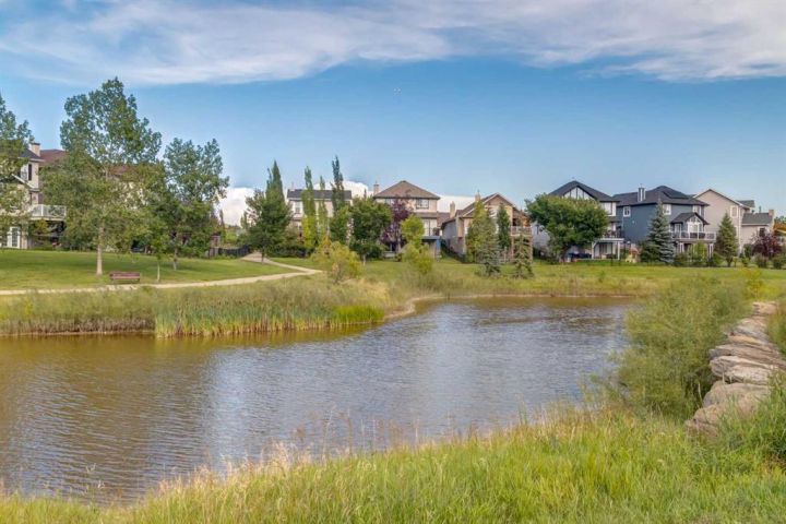 **Walkout Home Backing onto Pond & Pathways | Almost 2,300 Sq Ft of Living Space ** Welcome to this beautifully situated 2-storey walkout home, tucked away in a quiet cul-de-sac in Airdrie. Set on a spacious pie-shaped lot, this property backs onto serene walking paths and a picturesque pond—perfect for those who love peaceful views and easy outdoor access. With almost 2,300 sq ft of well-designed living space, the main floor features an open-concept layout. The family room offers a large picture window that perfectly frames the pond view. The kitchen provides ample cabinetry, generous counter space, and a sunny dining nook. Step outside to the upper deck where you’ll enjoy tranquil morning sunrises over the water. The main floor also has a convenient home office OR could be a guest bedroom and a 2-piece bathroom completes the main level. Upstairs, you’ll find three well-sized bedrooms, including a spacious primary suite with a walk-in closet and a 3-piece ensuite featuring a relaxing soaker tub. A full 4-piece bath serves the two additional bedrooms. The fully developed walkout basement expands your living space with a large rec room/family area complete with a cozy fireplace, a 3-piece bathroom, and a designated laundry room. This home offers incredible value in a sought-after location—ideal for families, nature lovers, and anyone seeking a blend of comfort and convenience. Don’t miss your opportunity to view this gem. Book your showing today!