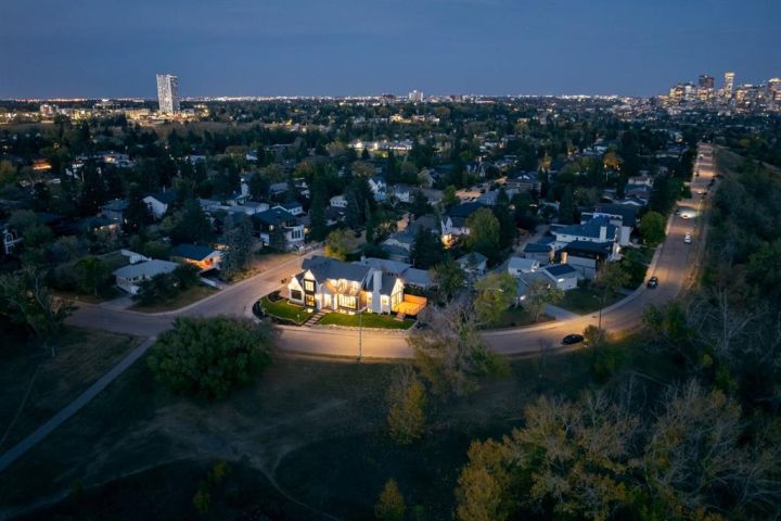 OPEN HOUSE Saturday October 4th 1-4PM! Homes on this exclusive ridge rarely come to market, and this breathtaking two-storey estate is a shining example of elevated inner-city living. With 5,545.89 sq.ft. of exquisitely developed space, this 6 bedroom, 5.5 bath residence blends refined craftsmanship with functional luxury; set against a backdrop of sweeping valley and park views. Step inside to soaring ceilings, pristine engineered hardwood floors, and custom archway details that frame each thoughtfully designed space. The heart of the home begins in the sunlit dining area, perfect for hosting epic dinner parties, and highlighted by west-facing triple-glazed LUX windows. The adjacent chef’s kitchen impresses with stainless steel integrated appliances, including a Wolf gas cooktop, double wall ovens, classic white shaker cabinetry, and a hidden butler’s pantry for discreet prep and storage. The expansive great room invites relaxation with vaulted ceilings and a cozy tiled gas fireplace, opening directly to a sunny south-facing deck overlooking endless green space. A main floor guest suite (or executive office) with a private ensuite, a designer powder room, and a spacious mudroom with built-ins complete this level. The fully insulated triple car garage is EV-ready and lift-kit friendly, marrying form and function. Upstairs, a serene primary retreat features elegant vaulted ceilings, a custom walk-in closet, and a spa-inspired 5-piece ensuite with a soaker tub, dual vanities, and a glass shower with bench and niche. Three additional bedrooms (one with an ensuite), an upper laundry room with sink and storage, and a charming library nook provide comfort and convenience for the entire family. The fully developed basement is an entertainer’s dream: featuring a large media lounge, games area, wet bar with brick backsplash and undermount lighting, and a high calibre wine room that secretly accesses the highly systemized maintenance room. A versatile home gym, sixth bedroom with walk-in closet, and additional full bathroom on this level ensure guests feel at home. Noteworthy highlights include: Hydronic in-floor heat in the basement; 2 High-Efficiency furnaces & A/C units; built-in speakers throughout; and quartz countertops in all bathrooms. Located minutes from the University of Calgary, Foothills Hospital, and local shops and restaurants, this timeless home sits in a top-tier school catchment and offers quick access to major routes while maintaining a tranquil, park-like setting. A truly unique opportunity to own a well-appointed, move-in ready home in one of the city’s most prestigious enclaves.