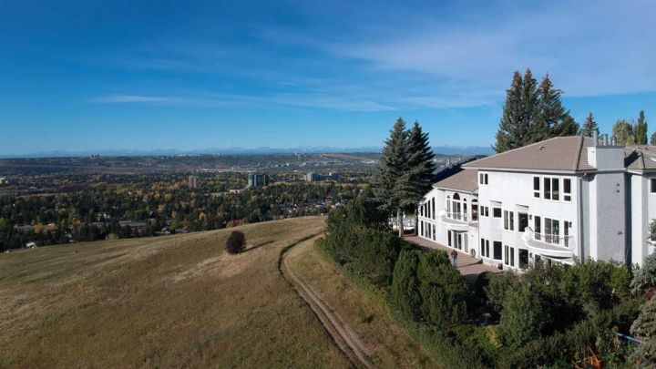 Welcome to Edelweiss Point, a small and exclusive enclave perched at the top of the hill. This exceptional residence offers breathtaking views of Nose Hill Park, Downtown Calgary, and a glimpse of the majestic mountains to the south. Spanning over 7,000 square feet of total living space, this expansive two-storey home features a fully developed walkout basement, 7 bedrooms, and 6 bathrooms, great for a large family or a multi-generational one. Every room is generously sized. The back of the home is adorned with an expanse of windows that flood the major rooms on all three levels with natural light and showcase the stunning vistas. The home was fully renovated in 2023, boasting a new kitchen, hardwood floors, updated millwork, new windows, and a completely developed lower level. The upgraded kitchen boasts top of the line appliances, granite counters and a spectacular view from the kitchen sink. A nanny space, complete with bath is conveniently located on the main floor, providing privacy and comfort. An illegal lower-level suite offers potential for legal conversion with minor upgrades and City of Calgary approval. The kitchen on the lower level is expansive, untypical for a second kitchen. The landscaped yard is terraced down to the open park space below, creating a seamless connection to nature. Additional features include a triple garage and an expansive driveway, ensuring ample parking and storage. This property exemplifies luxury, functionality, and location—an ideal choice for discerning buyers seeking a prestigious Calgary address.