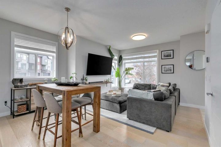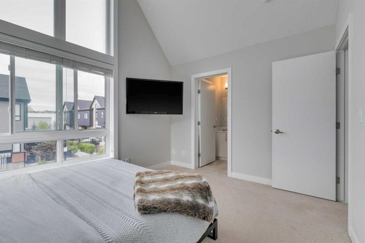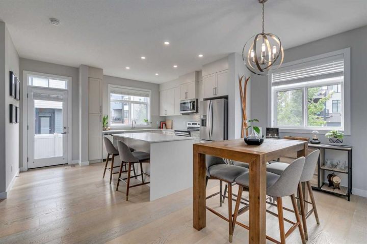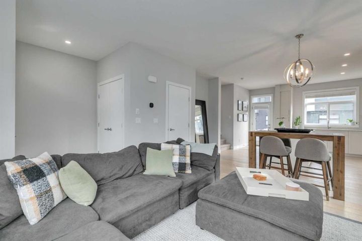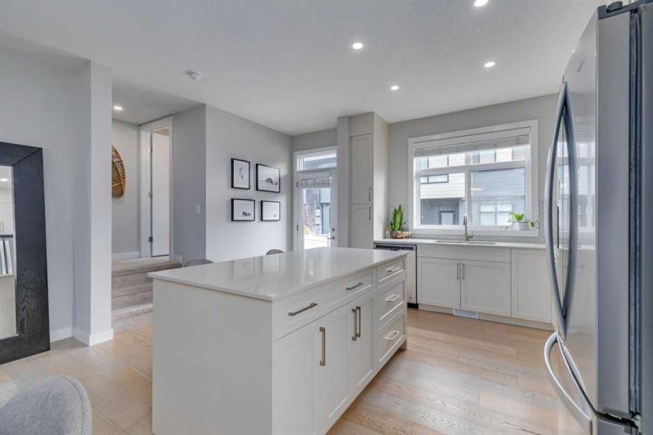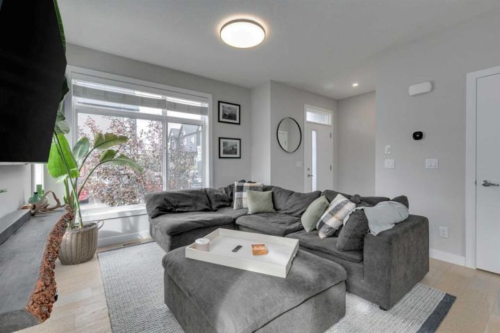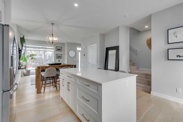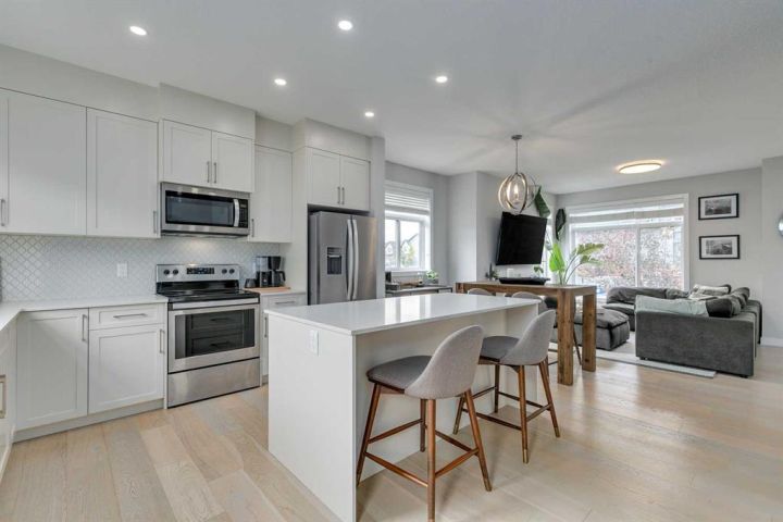 Welcome to this rare 4-bedroom, 3.5-bathroom end-unit townhome in the sought-after community of Sage Hill! Offering 1,900 sq. ft. of developed living space, this home is the perfect blend of modern design, functionality, and comfort. The open-concept main floor features a stylish kitchen with a large island, stone counters, and designer finishes, flowing seamlessly into the bright living and dining areas — perfect for both entertaining and everyday living.