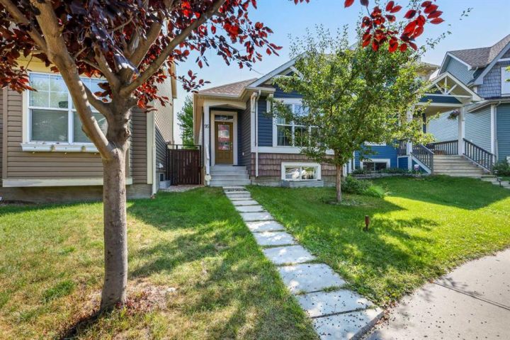 This little gem nicely and quietly tucked away in the lovely community of New Brighton will have you falling in love with the idea of Bungalow living all over again. With FOUR BEDROOMS and THREE BATHROOMS, there is ample room for all to enjoy. Whether you are a young growing family, ready to right size into one level living or considering the possibility of being an entrepreneur with a fantastic investment opportunity, this home will fit the bill. Clean and well taken care of, you will immediately be welcomed into almost 2000sqft of developed living space that is warm and cozy while being bright and beautiful. Stepping up to the main living area you will notice right away the gorgeous vaulted ceiling offering a 10ft peak opening up the space to include a great kitchen boasting GRANITE COUNTERTOPS, extended island creating a nice raised eating bar, classic subway tile back splash, sleek stainless steel appliances, corner pantry and a beautiful sunlit skylight that invites an abundance of natural daylight into the home. You will discover TWO BEDROOMS on the main floor with the Primary Bedroom boasting your very own en suite, while the secondary bedroom would be an ideal office or nursey. All of this that opens up to your spacious living room with the continued vaulted ceiling that carry's your sightline over, through over sized windows, into the back yard framed in by mature trees giving you a sense of being in an A-frame cabin. The FULLY FINISHED lower level offers so much additional living space with a huge family room with a corner gas feature fireplace with tile surround and wooden mantle. You will discover TWO MORE BEDROOMS (ONE WITH A WALK-IN CLOSET), A STYLISH FULL BATH and an additional living room area that could be used for a variety of uses; an office area, play space or media room. Stepping out to the back yard you will see a great little deck for your BBQ and then a great stone patio with room for multiple areas of entertaining. Fully fenced on a long yard with a stone pathway out to your OVER SIZED DOUBLE DETACHED GARAGE WITH A PLETHURA OF SOLAR PANELS!! Help reduce utility bills with these already installed SOLAR PANELS!! This home is just steps to the green space, walking trails and within walking distance to High Street in McKenzie Town and just a short drive to all the amenities on 130th, Mahogany and Auburn Bay. Quick access to Stony Trail and Deerfoot and a short distance to the South Health Campus, numerous restaurants and movie theatre. Discover this great home today!