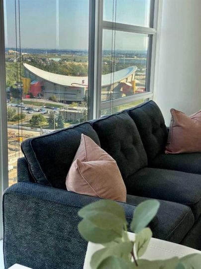 Discover urban luxury in this mint-condition 2-bedroom, 2-bathroom condo in The Guardian’s South Tower, perfectly nestled in Calgary’s vibrant Victoria Park/Beltline. Breathtaking city, river, or mountain views through floor-to-ceiling windows create an inspiring backdrop for young professionals, couples, or downsizers craving a stylish, low-maintenance lifestyle. Move-in ready with optional high-quality furniture included, this turnkey gem eliminates the hassle of setup. Enjoy a rare included parking stall, a modern kitchen with sleek finishes, and access to premium amenities like a fitness center, garden terrace with BBQs, and a social club for effortless entertaining. Steps from downtown, East Village, Stampede Park, and trendy 17th Avenue, you’re at the heart of Calgary’s cultural pulse. Investors, seize the rental potential in this high-demand area! Priced competitively in Calgary’s balanced 2025 market, this condo won’t last—book your private showing today and submit your offer before it’s gone!