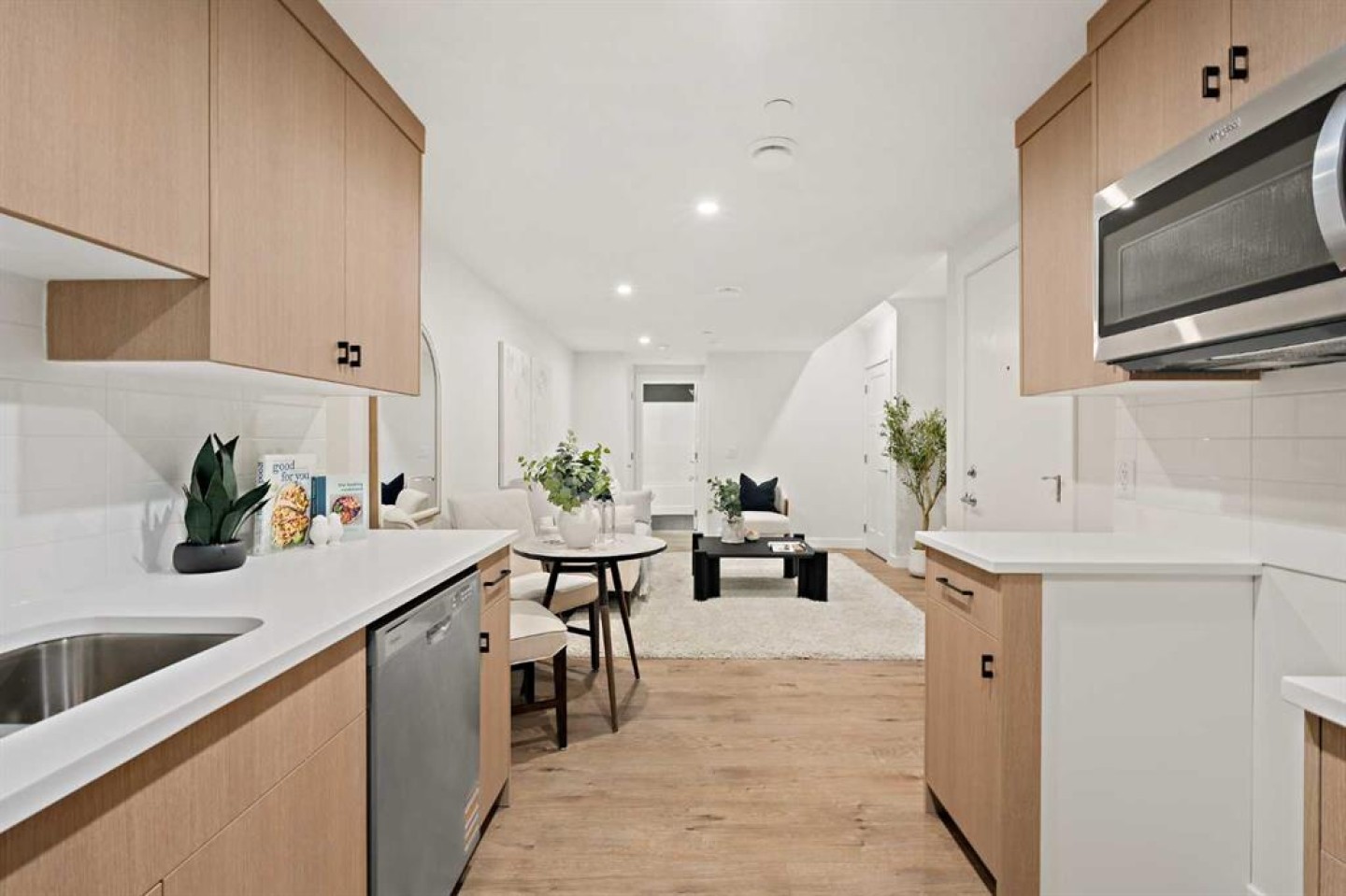Welcome to the stunning, brand-new Wicklow, built by Brookfield Residential, featuring a legal basement suite and ideally situated in the heart of Livingston, fronting onto a beautiful green space! This thoughtfully designed home offers nearly 1,700 sq. ft. of above-grade living space, with 3 bedrooms, 2.5 bathrooms, a fully legal 1-bedroom basement suite with a private side entrance, and a single-garage with a parking pad, perfect for a rental suite, extended family, or guests. The main level features 9' ceilings that enhance the sense of space and comfort throughout. At the heart of the home is a gourmet kitchen equipped with a built-in chimney hood fan and a built-in microwave, opening directly to the dining area and patio doors that lead to the backyard. The spacious front great room is filled with natural light from its expansive windows, creating a bright and welcoming atmosphere all day long. Upstairs, a central bonus room smartly separates the primary suite from the additional bedrooms, offering extra privacy. The primary suite includes a walk-in closet and a luxurious 4-piece ensuite with dual sinks and a walk-in shower. Two more bedrooms, a full bathroom, and a laundry room complete the upper level. The fully finished basement features a self-contained legal 1-bedroom suite with a full kitchen and separate entrance, an incredible added value whether you’re looking for rental income or multi-generational living options. The backyard leads to a private single-detached garage plus an additional parking pad for extra convenience. This home is also protected by both the builder's warranty and Alberta New Home Warranty for added peace of mind.