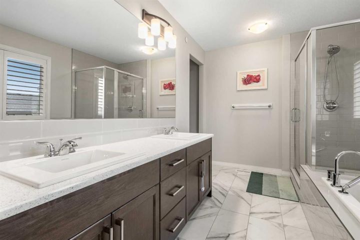 Upstairs, you’ll find 4 generous bedrooms, including the master bedroom with ensuites, a bonus room, and the convenience of laundry on the upper level. The fully developed basement offers a large recreation area, 2 additional bedrooms, a 3-piece bath, laundry space, and a separate side entrance, ideal for extended family or future legal suite potential "subject to approval and permitting by the city/municipality". Located in a prime area close to parks, green spaces, shopping, community centers, and all essential amenities, this home perfectly blends luxury, functionality, and accessibility.