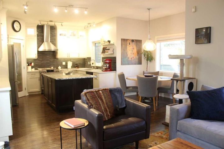 It’s everything you could want in a large home for the large family. Almost 3000 sq/ft of living space across all 3 levels with 5 bedrooms on a pie shape lot providing a big back yard. Nestled on a stunning location, tucked away in a quiet corner of the street overlooking a beautiful park/playground, just around the corner from all your daily needs at the local shopping centre. The kitchen is breathtaking with it’s huge granite island along with abundant counter and cupboard space and high-end finishes. The cozy living room is well integrated into the open concept of the main floor. The dining room is elegant as is the discrete little powder room just down the hall. Main floor conveniences like the generous mudroom, central laundry and smart walkthrough pantry will impress. No carpets on the main floor or upper level makes the living spaces sleek and clean. The Master bedroom is spacious and well appointed with walk-in closet and 5 pc en-suite bathroom. Two bedrooms and full bath complete the upper level which also boasts peek-a-boo views of the mountains and COP. The lower level is host to 2 more generous bedroom with big bright windows, 4 pc bath and plenty of storage space. The house has been well tended and upgraded with genius features including heat pump cooling/heating system which uses no gas when it’s warmer than -5 Celsius and solar panels that provide electric rebates and credits for a good portion of the year. The back yard is the envy of all, with extensive deck space, tons of yard and a gorgeous atmospheric retreat under the lighted pergola and outdoor fireplace mantle: perfect for cooling autumn nights. Absolutely no compromises or disappointments here, see for yourself and get ready to move home.