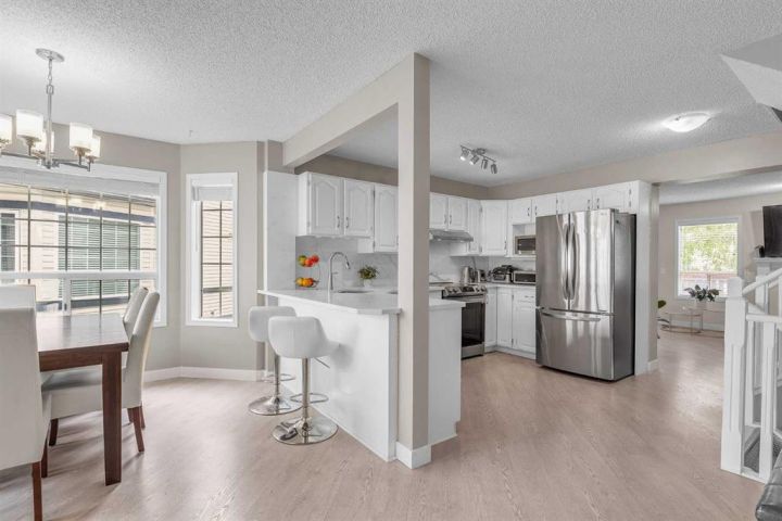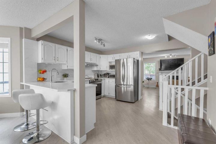 Welcome to this beautifully updated 2-story end-unit townhouse nestled in the quiet and family-friendly community of Citadel. Offering over 1,700 sq.ft. of total living space, this home features 3 bedrooms, 2.5 bathrooms, a finished basement, and an attached single-car garage. Step inside to discover fresh new paint throughout and a bright, open-concept main floor. The kitchen boasts quartz countertops, a stylish stone backsplash, a breakfast bar, and newer stainless-steel appliances perfect for both everyday living and entertaining. Adjacent is a cozy dining area and a spacious living room complete with a gas fireplace set in a stunning decorative stone surround. Upstairs, you’ll find three generously sized bedrooms, including a primary suite with a walk-in closet and a 4-piece ensuite. The additional two bedrooms are well appointed and share another full 4-piece bathroom. The fully finished basement offers a large rec room, convenient laundry area, and ample storage space ideal for growing families or those needing a flexible living area. Tucked away in a peaceful corner of the complex, this end unit provides added privacy and tranquility. Recent upgrades include the complete removal of Poly-B plumbing, giving you peace of mind for years to come. Located close to schools, parks, shopping, and transit, and with easy access to Country Hills Blvd and Stoney Trail, this move-in-ready home truly has it all. Call today for your private viewing.