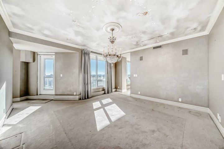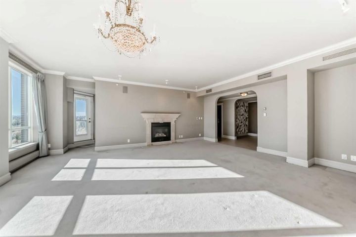 Welcome to The Grandview, one of Calgary’s most distinguished and sought-after condominium residences. Ideally positioned along the gorgeous Elbow River, this premier address is just steps to the pathway system, one block from the vibrant shops and restaurants of 4th Street and within walking distance of the Glencoe Club, offering an unbeatable lifestyle! Positioned in arguably the finest location in the building this spacious estate home spans nearly the entire south side of the 12th floor, capturing abundant natural light and offering unobstructed panoramic views of the Elbow River Valley and the majestic Rocky Mountains from its many windows and three large balconies. Featuring an impressive 3,195 square feet, this home offers a grand, traditional layout including a formal living room, formal dining room with a gas fireplace, and an inviting family room centered around a second gas fireplace. The kitchen is complemented by a large butler’s pantry, ideal for hosting with ease. There are two generous bedrooms, both of which have private ensuite bathrooms for the utmost comfort and privacy, plus there's a large den that could serve as a third bedroom if desired. The king-sized primary suite, boasting a luxurious 6-pc ensuite bathroom and large walk-in closet, offers sweeping river views and generous space. Additional features include three titled underground parking stalls, two large storage lockers, and access to The Grandview’s full-service amenities which include a 24-hour concierge, two guest suites, party rooms, the Lang House, visitor parking, and a car wash. This is a rare opportunity to acquire one of Calgary’s most prestigious riverfront residences!