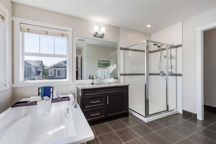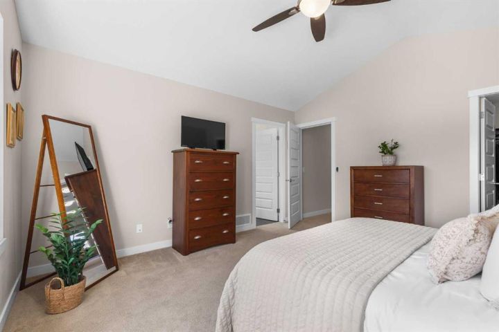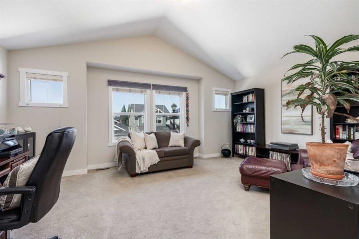 Upstairs, you'll find a vaulted bonus room that makes a great play area or secondary family room, plus three spacious secondary bedrooms, a full four-piece bathroom, and a convenient upper laundry room with additional storage. The primary retreat is a standout, with vaulted ceilings, a built-in window bench, walk-in closet, and a spa-like five-piece ensuite featuring a tiled shower, deep soaker tub, dual sinks, and plenty of natural light.