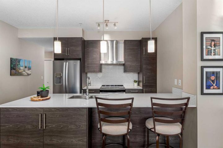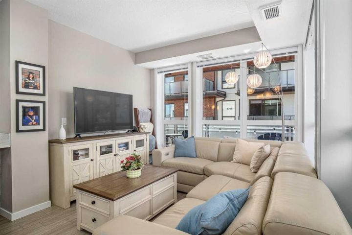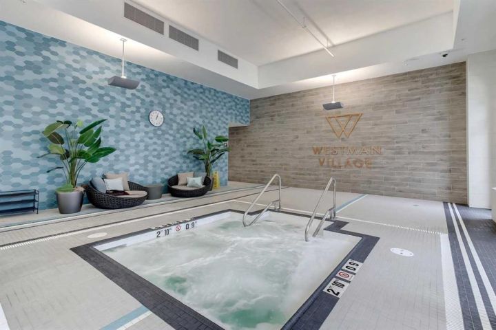 Experience resort-style living every day at the highly coveted Westman Village on Mahogany Lake. This exceptional 2-bedroom, 2-bathroom fourth-floor corner condo is more than a home—it’s a lifestyle. From the moment you arrive, you’ll see why Westman Village is one of Calgary’s most sought-after communities, offering an unmatched blend of luxury, convenience, and connection. Inside, you’ll be welcomed by expansive wraparound windows that flood the home with natural light and frame serene courtyard views. The open-concept design flows seamlessly from the chef-inspired kitchen with modern finishes and sleek cabinetry into the bright living and dining areas, making it perfect for both relaxing and entertaining. Both bedrooms are generously sized, each with large windows that keep them light and airy, while the primary retreat offers a walk-in closet and private ensuite. A second full bathroom adds convenience for guests or family. Step outside to your private wraparound patio, complete with a unique two-sided deck—enjoy sunshine with your morning coffee on the south side and soak in the warmth all afternoon on the west side. Whether it’s the soothing sounds of the courtyard fountain, peaceful evening views, or even the Stampede fireworks in summer, this outdoor space is designed for every moment. Adding to its appeal, this condo is thoughtfully situated in a corner position with only one attached neighbour, providing extra privacy and tranquility. It also comes with a titled underground parking stall, a convenient private storage locker directly in front of your parking space, 24-hour concierge service, top-notch security, and ample visitor parking with EV charging stations. But what truly sets this property apart is the lifestyle that comes with it. At Westman Village, every day can feel like a vacation. The 40,000 sq. ft. amenity centre is second to none, featuring a swimming pool with a two-storey waterslide, a golf simulator, a fitness centre, a movie theatre, a full-sized gymnasium, basketball courts, a workshop, a craft studio, and beautifully appointed party rooms. Whether you want to stay active, pursue a hobby, or simply unwind, there’s something here for everyone. Dining and entertainment are at your doorstep, with renowned venues such as Chairman’s Steakhouse and Alvin’s Jazz Club just steps away, along with cafés, boutiques, and everyday conveniences. Stroll through landscaped pathways, meet friends for dinner, or take a leisurely walk along the shores of Mahogany Lake—Calgary’s largest freshwater lake with exclusive resident access. With quick access to Deerfoot and Stoney Trail, commuting and exploring the city is a breeze. If you’re looking for more than just a home—if you’re looking for a community that offers connection, convenience, and a resort-style lifestyle year-round—you’ve found it here in Westman Village.