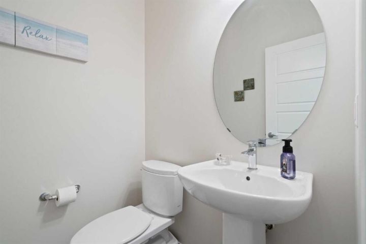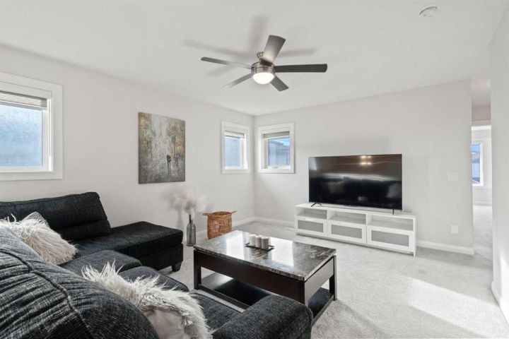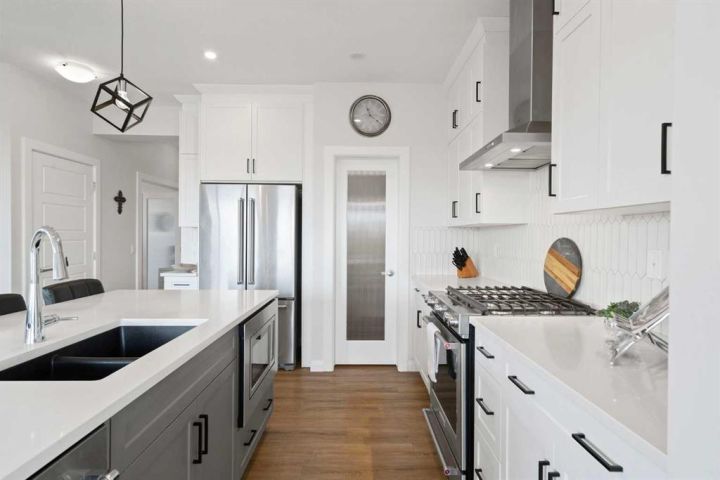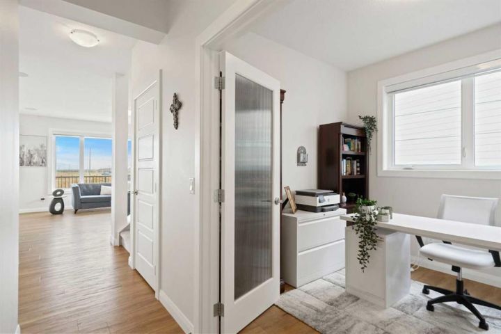 Say “hello!” to this charming Creekstone walkout home. Tucked away on a quiet cul-de-sac, this upgraded single-family home sits on an oversized, pie-shaped lot backing directly onto a greenbelt walking path, with completed landscaping, open views of nature, and even downtown skyline views and Stampede fireworks in the distance. Inside, timeless design meets modern comfort. Wide-plank luxury vinyl flooring grounds the main level, while 9’ ceilings, wrought-iron railings, and large windows create a bright, welcoming flow. The heart of the home is the beautifully curated, highly upgraded kitchen with KitchenAid appliances, including a gas range, chimney hood fan, quartz countertops, tile backsplash, walk-through pantry, and an oversized island perfect for gatherings. The spacious great room centers around a floor-to-ceiling tile fireplace, while built-in speakers throughout the home (controlled via the Sonos app) set the mood for every occasion. A private main-floor office enclosed by double French doors offers a quiet workspace. Step out to the wraparound deck to enjoy peaceful greenbelt views and watch the sun set over your fully landscaped yard, which slopes gently away from the home. Upstairs, a central bonus room anchors the second floor, offering separation and privacy between bedrooms. The primary suite is a serene retreat with automatic blinds, a spa-inspired ensuite featuring dual sinks with tons of counterspace and storage, a tiled walk-in shower, a deep soaker tub, and a generous walk-in closet. Two additional bedrooms (each a great size) are located on the opposite side of the bonus room, along with a stylish 4-piece bath and a dedicated laundry room that’s on every mom’s wishlist! Downstairs, the bright unfinished walkout basement features oversized windows and is roughed in for a future bathroom, ready to be developed into your dream rec area, additional bedrooms, or a legal suite (subject to City approvals). The exterior is wrapped in James Hardie board for lasting durability, and the insulated, drywalled double attached garage adds everyday convenience. Located in Pine Creek, one of Calgary’s most scenic and fast-growing new communities, this home offers quick access to Stoney Trail, Macleod Trail, 210 Ave, Township Plaza, Legacy’s shopping districts, and Spruce Meadows, with future schools planned nearby. With its natural pathways, playground down the street, family-friendly energy, and city conveniences close at hand, this move-in-ready walkout delivers the space, finishes, and lifestyle you’ve been waiting for, without the wait to build. Your next chapter begins here. Book your private viewing today and don't forget to WATCH THE VIDEO!