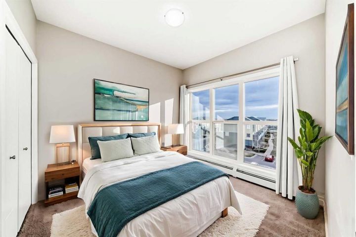 The primary suite feels like a private sanctuary with its SOARING CEILING and ample closet space. The SECOND BEDROOM—also complete with ample closet space—is located down the hall, next to the 4-piece main bath, making it perfect for family, guests, or a home office.