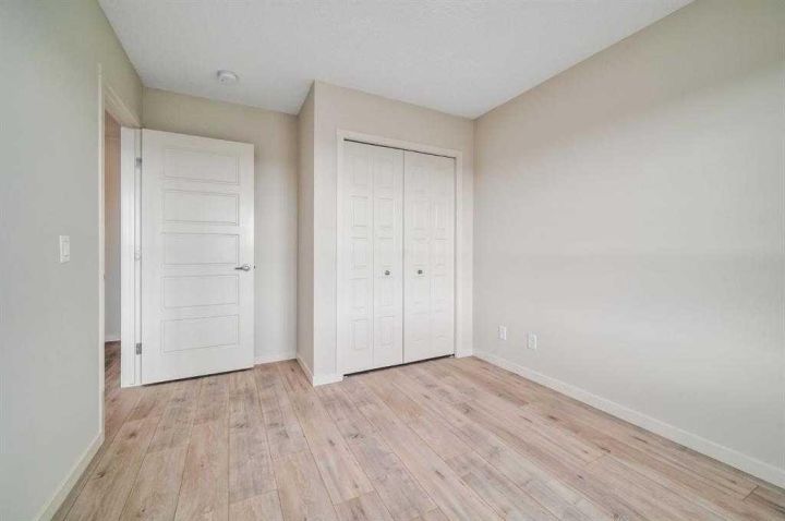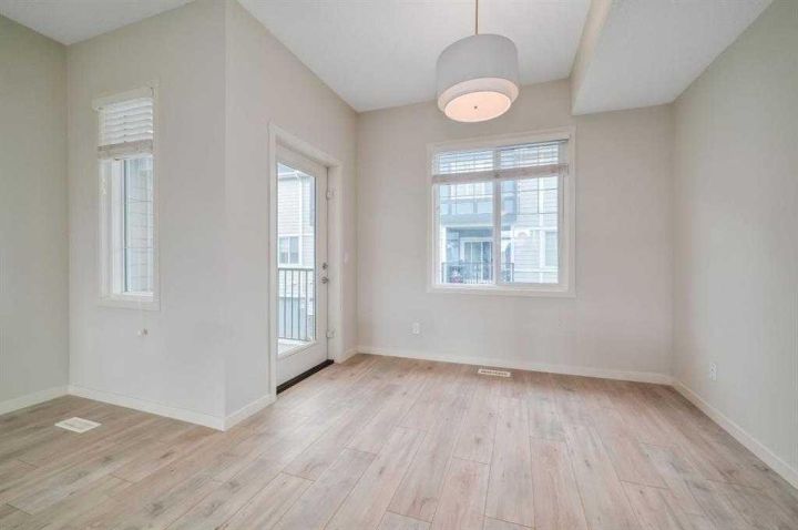 This condo is priced among the most affordable units in the complex. Welcome to this exceptional over 1,700 sq ft townhome in "The Elements of Nolan Hill" complex, offering contemporary style and a private setting backing onto single-family homes. Built in 2018, this quiet unit boasts a unique private front entrance, setting it apart from the rest of the complex. The main floor features an open-concept layout, seamlessly connecting the upgraded kitchen with sleek stone countertops and stainless steel appliances to the spacious living and dining areas. A convenient half bath on this level adds to the functionality. Upstairs, you'll find two well-sized bedrooms, a four-piece main bathroom, and a generous primary bedroom complete with its own private ensuite. Throughout the home, enjoy the durability and modern aesthetic of luxury vinyl plank flooring and stylish tile. Step outside to your exceptionally sized balcony, perfect for entertaining or relaxing, and equipped with a natural gas line for your BBQ. The lower level provides direct access to the double-wide attached garage, along with a versatile den/flex room – ideal for a home office, gym, or media space. Location is key! This home offers incredible convenience, just minutes from Costco off Sarcee Trail and a vast array of associated shopping, restaurants, and shops. Enjoy easy access to major roadways, making your commute a breeze. This home is an ideal choice for first-time buyers or those looking to step up into a modern, low-maintenance lifestyle in a vibrant Calgary community. Don't miss this opportunity!