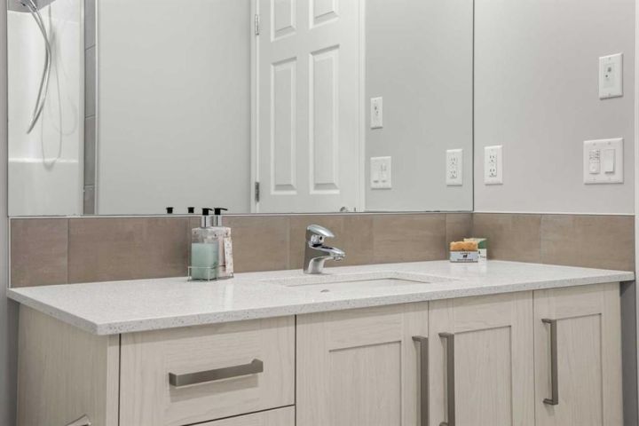 The stylish kitchen is a true showstopper, featuring quartz countertops, a Silgranit sink, extended backsplash and upgraded stainless steel appliances including a french door fridge with a slide -in range, built-in microwave and dishwasher. Enjoy seamless entertaining in the bright open-concept living area, complete with a TV conduit for hidden wiring and direct access to the deck with a BBQ gas line.