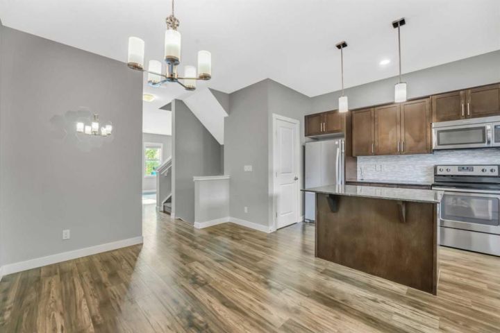 ~ OPEN HOUSE CANCELLED ~ NO CONDO FEES | OVER 2,075 SQ FT FINISHED | 4 BEDROOMS | 4 BATHROOMS | DOUBLE GARAGE | PRIVATE BACKYARD | FRESHLY PAINTED | UPPER LAUNDRY | FINISHED BASEMENT | WALK TO SCHOOL & PATHWAYS | Blending comfort, function and freedom from paying condo fees, this refreshed townhome delivers over 2,075 sq ft of developed space across three levels, complete with 4 bedrooms, 4 bathrooms and a sunny, fenced backyard tucked behind a double detached garage. Inside, the main level feels bright and open, freshly painted in soft neutrals and finished with updated flooring. The front living room is bathed in natural light thanks to extra windows, while the dining area flows seamlessly into a kitchen designed to make mealtimes easy. A central island with bar seating, stainless steel appliances, a full pantry and loads of cabinetry make the space both stylish and practical. A discreet powder room and welcoming entry complete the main floor. The primary suite on the upper level provides a peaceful escape with a walk-in closet, 3-piece ensuite and large windows that keep the space bright. Two additional bedrooms, a full 4-piece bathroom and convenient laundry on the upper floor add flexibility and everyday ease. Downstairs, the fully finished basement offers a comfortable rec room, a 4th bedroom with a walk-in closet and a full bath, perfect for guests, older children or creating a separate zone for work or play. Gather in the private backyard with mature landscaping and a patio that’s perfect for summer grilling or relaxing with family and friends. Curb appeal is elevated by modern Tudor-inspired architecture and low-maintenance front landscaping. Set in the family-oriented Hillcrest community, this home is walking distance to Northcott Prairie School (K–8), playgrounds and peaceful walking paths. With quick access to QEII, CrossIron Mills, and everyday shopping, you’re close to it all while enjoying the ease of suburban living. A beautifully maintained, move-in-ready home that adapts to the needs of growing households.