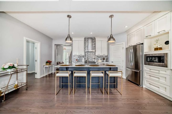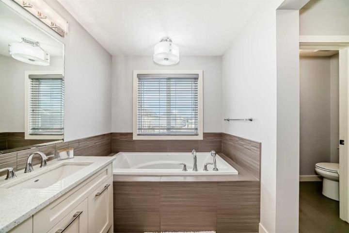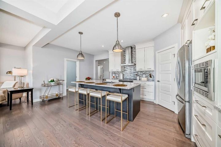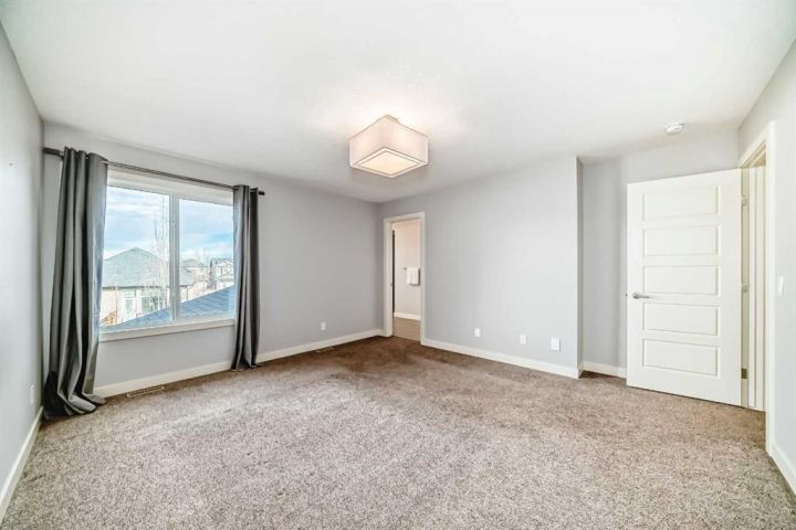 Stunning Calbridge Show Home – the Daytona 2 model with a triple tandem heated garage, located in the highly sought-after and family-friendly community of Legacy. This exceptional 2-storey home stands out with its thoughtful design, premium finishes, and over 3,000 sq. ft. of beautifully developed living space, including the fully finished basement with 9-ft ceilings. The main floor welcomes you with a spacious foyer leading to a bright open-concept layout filled with natural light. The living room features large windows and a sleek gas fireplace with stainless surround, creating a warm and elegant space for relaxing or entertaining. A main floor den/office provides the perfect setup for those working from home. The entire main level is enhanced with gorgeous wide-plank engineered flooring and upgraded lighting throughout. The chef-inspired kitchen is sure to impress with its large quartz island, ceiling-height custom cabinetry, stainless steel appliance package, quartz countertops, and a convenient walk-through pantry. The adjoining dining area is perfect for family gatherings, while the mudroom helps keep everything organized. A 2-piece powder room completes the main level. Upstairs, you’ll find a grand bonus room that’s ideal for movie nights or a play area. This level includes four generously sized bedrooms, a 5-piece main bathroom with quartz double vanity, and a convenient upper-level laundry room. The primary suite is a true retreat, featuring a large walk-in closet with built-in shelving and a luxurious 5-piece ensuite complete with an extended quartz vanity, soaker tub, and separate shower. The fully developed basement is an entertainer’s dream, offering a spacious family room with a full wet bar, granite countertops, built-in dishwasher, bar fridge, and matching cabinetry. There’s also a custom wall bed for guests, a 3-piece bathroom, and oversized windows that flood the space with natural light. Step outside to a maintenance-free composite deck with tempered glass railing overlooking the fully fenced backyard. The stamped concrete patio provides additional space for outdoor entertaining, and the paved back lane offers privacy and easy access. Additional features include central air conditioning, a heated triple tandem garage with overhead gas heater, water softener, and a 50-gallon hot water tank. Beautiful curb appeal is showcased with Hardie board siding and stone accents. This exceptional home is ideally located close to all amenities—schools, parks, playgrounds, major shopping centers, and just minutes to Stoney Trail for easy commuting. A stunning and fully finished Calbridge show home that truly has it all—luxury, comfort, and location. Don’t miss your opportunity to make this beautiful Legacy home yours! Book your private showing today!