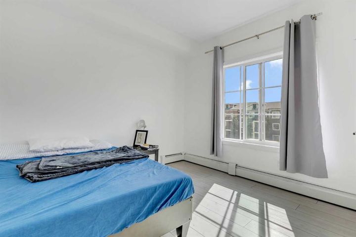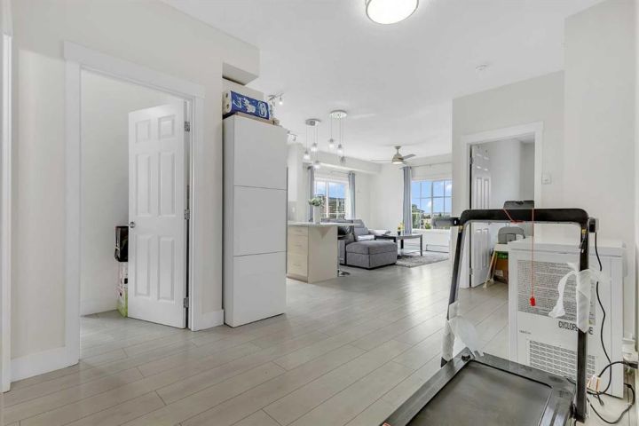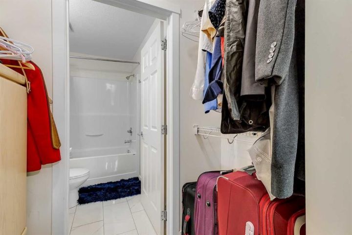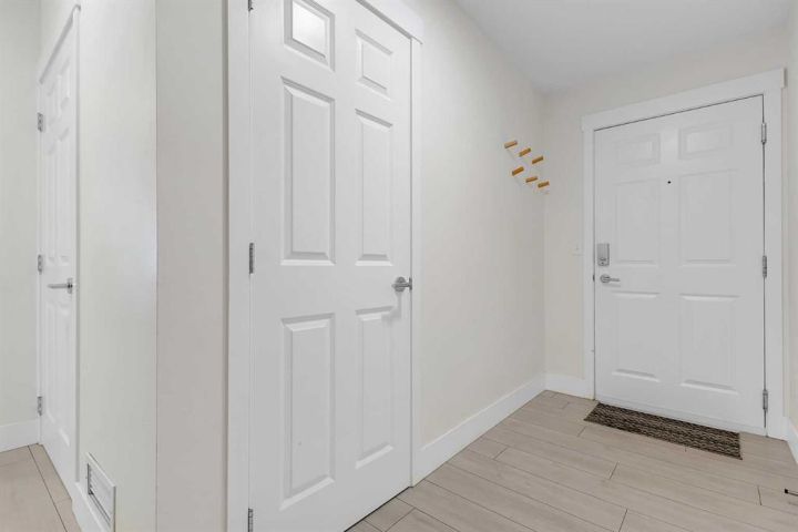Bathed in natural light from extra windows, this top-floor retreat offers peace and privacy. The smart layout places bedrooms on opposite sides, ensuring functionality, while ample storage—including a built-in entry closet, laundry room shelving, and a full-sized storage locker—adds practicality.