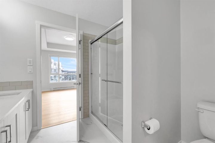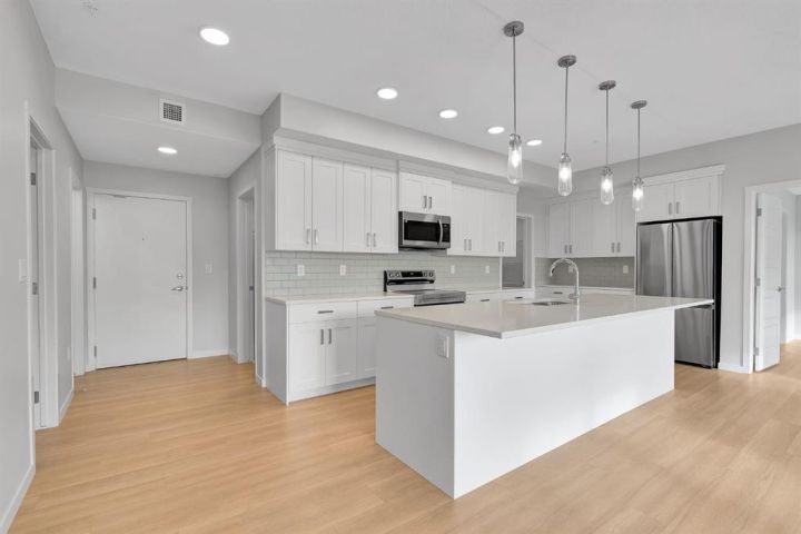 Bathed in southern light, this 3rd-floor unit features a spacious balcony spanning over 20 feet in length—perfect for entertaining or unwinding with a view. The kitchen is nothing short of spectacular, with floor-to-ceiling cabinetry, quartz countertops, an undermount sink, stainless steel appliances, upgraded lighting, a walk-in pantry and an oversized island that flows seamlessly into the living and dining areas. The primary retreat is a true sanctuary, offering a walk-in closet, and a 4 piece ensuite with dual vanities and a stand-up shower. Two additional bedrooms provide flexibility for family, guests, or a home office, while the nearby laundry/storage room and second full bath complete this highly functional layout. Thoughtful details include clear glass balcony railings, triple pane windows and air conditioning to ensure comfort year-round. Beyond your door, the lifestyle is unbeatable. Enjoy walking access to the world’s largest YMCA, the Seton HOA, shops, restaurants, cafes, and the South Health Campus Hospital. Additional amenities include: low condo fees, plenty of visitor parking, separate storage and dedicated bike storage. Pet-friendly (up to two 35KG pets), with underground titled parking and roller blinds, this home blends convenience and everyday practicality into one irresistible package!