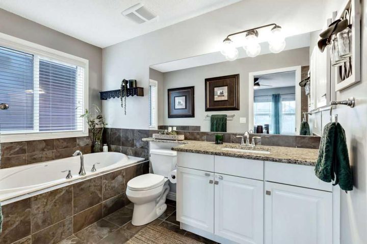 Upstairs, you’ll find three spacious bedrooms and an additional 4-piece bathroom for family convenience. The generously sized primary suite includes a walk-in closet and a spa-like ensuite.