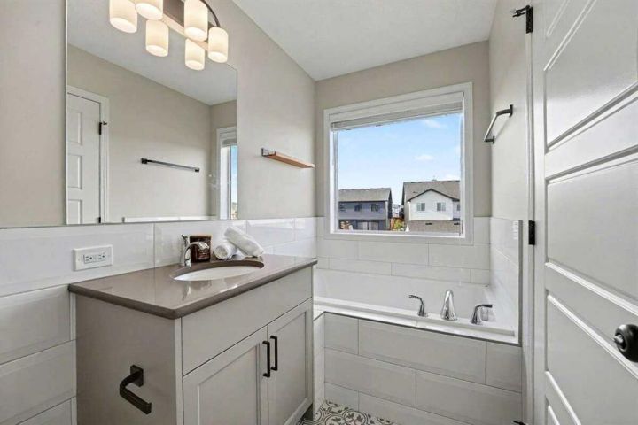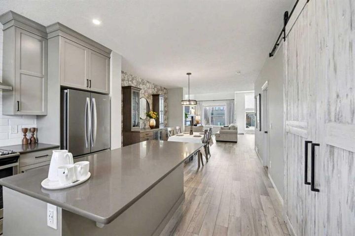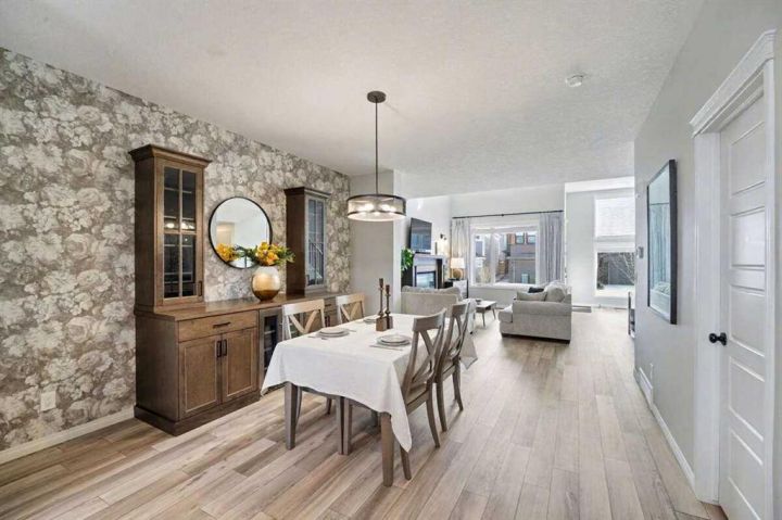 Step into this exceptional former Morrison Show Home, where modern design and everyday comfort meet in perfect harmony. Every corner of this elegant two-storey residence reflects craftsmanship, innovation, and more than $100,000 in luxurious upgrades. From the moment you walk through the door, you’ll feel the thoughtful attention to detail that defines this home. The main floor features rich hardwood flooring, 9-foot ceilings, and an airy open-concept layout designed for effortless living and entertaining. The chef-inspired kitchen boasts gleaming quartz countertops, high-end stainless steel appliances, and a custom-built China cabinet that blends beauty with functionality. Upstairs, you’ll find three spacious bedrooms, including a serene primary suite complete with a 4-piece spa-style ensuite and generous walk-in closet. The fully finished lower level adds even more versatility with a fourth bedroom, a cozy rec room, a wet bar, and a full bathroom—perfect for guests or family gatherings. Every detail has been carefully curated to enhance daily living: a pet-washing station at the rear entry for your furry friends, gemstone exterior lighting, underground sprinklers, and professionally landscaped surroundings that invite relaxation and pride of ownership. This home sits in the heart of Rockland Park, Calgary’s most exciting new community—where lifestyle and convenience converge. You’ll be just steps away from the community center, lakes, parks, outdoor swimming pool, and all other amenities that promise a vibrant and connected neighborhood experience. With room for a double detached garage, modern finishes throughout, and a design that perfectly balances elegance and warmth, this property stands as a true showpiece in one of Calgary’s most desirable locations. Don’t miss your chance to make this extraordinary home yours—where every detail is designed for living beautifully.