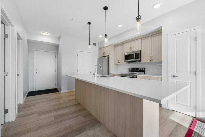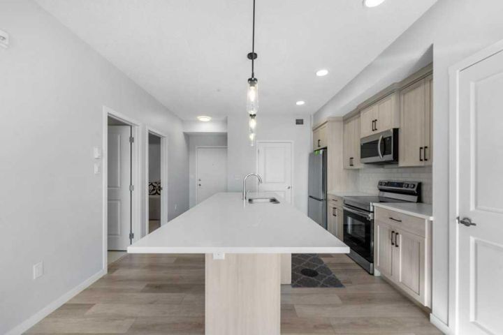 ***Watch 3D Tour*** Introducing a stunning and modern 2-bedroom 2 Bath Located in a prime area, this apartment is surrounded by all the amenities one could desire. This unit boasts plenty of natural light, making it a bright and welcoming space. The open-concept living room and kitchen with an island is perfect for entertaining guests. The kitchen is equipped with Modern Stainless steel appliances and ample storage space, making it the perfect space to cook and dine with loved ones .The Two bedrooms include a Primary Suite with a BEAUTIFUL ENSUITE BATHROOM. This UNIT is like New and has been well cared. There is lots of natural light into the unit and other features include throughout Vinyl flooring, zebra Blinds, Ensuite , a large IN-SUITE LAUNDRY/STORAGE Space and UNDERGROUND PARKING. The unit comes with three assigned storage lockers. The unit's prime location offers a comfortable and convenient lifestyle. Take advantage of the surrounding amenities, including sidewalks, streetlights, and walking/bike paths, perfect for exploring the neighborhood. Quick and Easy Access to Stoney Trail. Overall, this apartment is perfect for those seeking comfort, convenience, and modern living. With its spacious design, and prime location, it is truly a gem in the housing market. Don't miss the opportunity to make this apartment your new home!