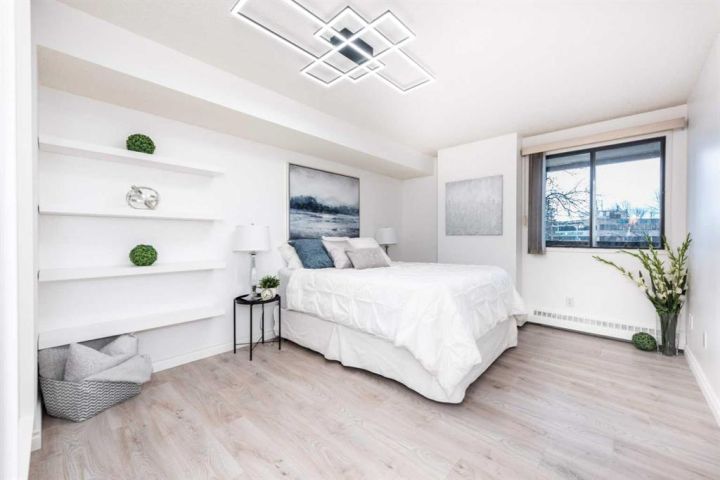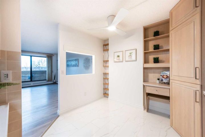 Prime WEST facing 2 bedroom renovated suite with UNDERGROUND parking and IN-SUITE LAUNDRY, in desirable Haysboro – you’re going to love all this quiet, concrete, well managed 18+ adult building has to offer. The suite’s been designed for comfort and convenience and is beautifully renovated and updated, offering nearly 900 SF and showcasing a HUGE west facing balcony. The updated eat-in kitchen showcases gorgeous marble tile flooring, ample cabinets, pull out drawers and storage, stainless steel appliances & ceiling fan. Vinyl plank flooring is featured throughout the main living areas and bedrooms. The spacious living room and dining room is bright and sunny, with a large patio door that leads to the west facing balcony. Primary bedroom easily accommodates king-sized furniture. Renovated and stylish 4 pc bath offers a soaker tub and designer fixtures. Second bedroom offers great flex space and insuite laundry & storage room complete the suite. Condo fees include all utilities—electricity, heat, water, sewer, parking and access to building facilities. The convenience of underground parking is yours, plus the building offers owners amazing amenities & features. The exercise room and outdoor terrace are on the same floor as the suite, there is a main floor social room for family & social gatherings with a large TV, kitchenette, coffee station, puzzle tables, shuffleboard & library. On-site concierge (available 4 hours a day, 5 days a week), bike & tire storage and extra shared laundry is available on each floor. Take advantage of this great location - Walking distance to the LRT station & close to shopping, restaurants, & easy access to major traffic arteries. Book your viewing today!