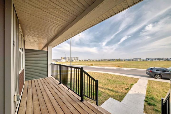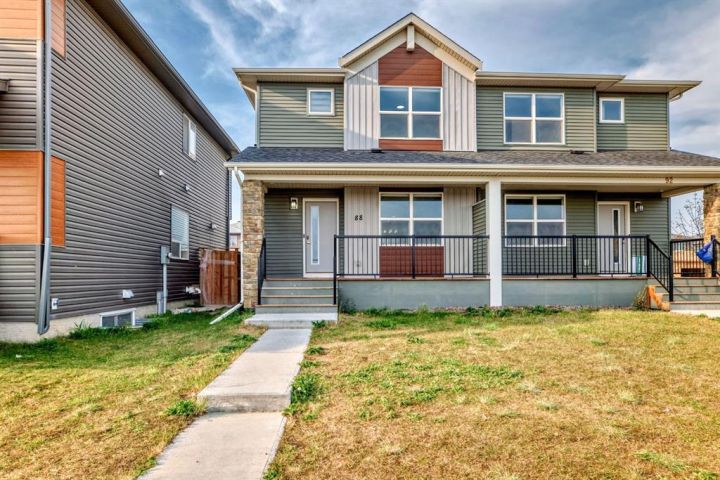 This almost-new, corner lot duplex in Cornerstone is ideally located with a front-facing park, offering both peace and convenience. Just a minute’s walk from a beautiful pond, the home features a modern open-concept design with a spacious living room, elegant dining area, and a chef-inspired kitchen with a stunning center island, stainless steel appliances, and a large pantry. Beautiful cabinetry with clean, modern look. Stainless steel appliances for a stylish touch. Large pantry for all your storage needs Bright, wide window flooding the space with natural light. Upper-Level Comfort- 3 spacious bedrooms + a versatile bonus room, Primary room with a 3-piece ensuite & walk-in closet. Additional common bath for convenience. Unfinished Basement – Endless Potential! 9-ft ceilings for a spacious feel, Separate exterior entrance. Two egress-sized windows for natural light & safety. Rough-ins for a future bathroom – customize to your needs. Prime Location & Unbeatable Convenience! Steps from playgrounds, shopping & the new Chalo FreshCo Plaza. 5 minutes to CrossIron Mills Mall. 10 minutes to Calgary International Airport. Quick access to Deerfoot & Stoney Trail – easy commuting! This gem won’t last long! Book your private showing today!