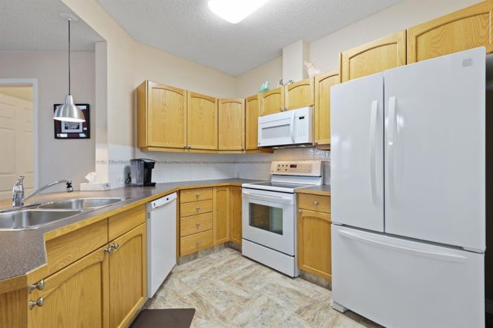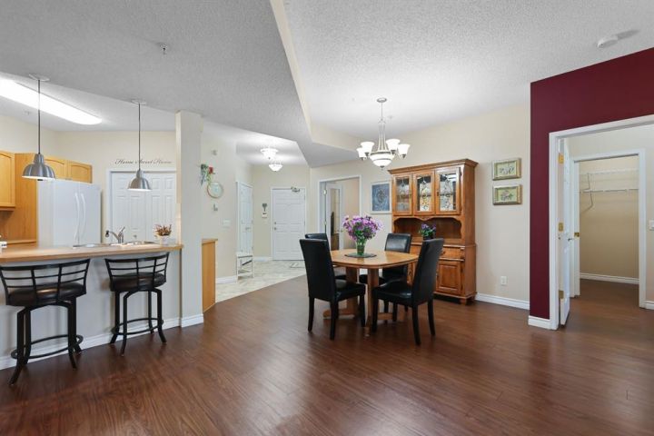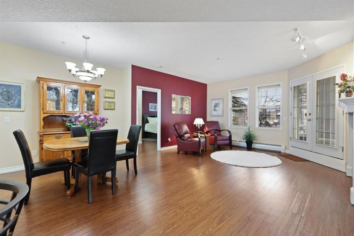 An exceptional opportunity to live in this bright and spacious 1188 Sq Ft outside corner unit, which features a large 20Ft x 8Ft covered patio with a natural gas Bar-B-Q included. This amazing condo features 2 bedrooms, 2 full bathrooms, a convenient den/hobby room, and caps it off with a laundry room as well! A Heated underground parking stall, storage unit, and heated visitor parking makes everyone happy! This unit welcomes you in with warm rich looking Vinyl Plank upgraded flooring. A spacious living room offers lots of windows and the comfort of a gas fireplace to keep you warm and cozy on those winter nights. Enjoy a light oak kitchen with ample cabinets, a sit up eating bar and a wonderful large pantry. With a nice size foyer, High Ceilings and in suite laundry, you have all you need in this condo. You have access to your deck from the bedrooms or the living room! Beacon Hill is a vibrant community with regular social activities including the amenity and games rooms, exercise rooms, carpentry shop and 2 guest suites. Don’t miss a Car wash too! The location is well connected to nature, pathways, LRT station, and major routes to Shopping, restaurants and many professional services. A wonderful place to call home!