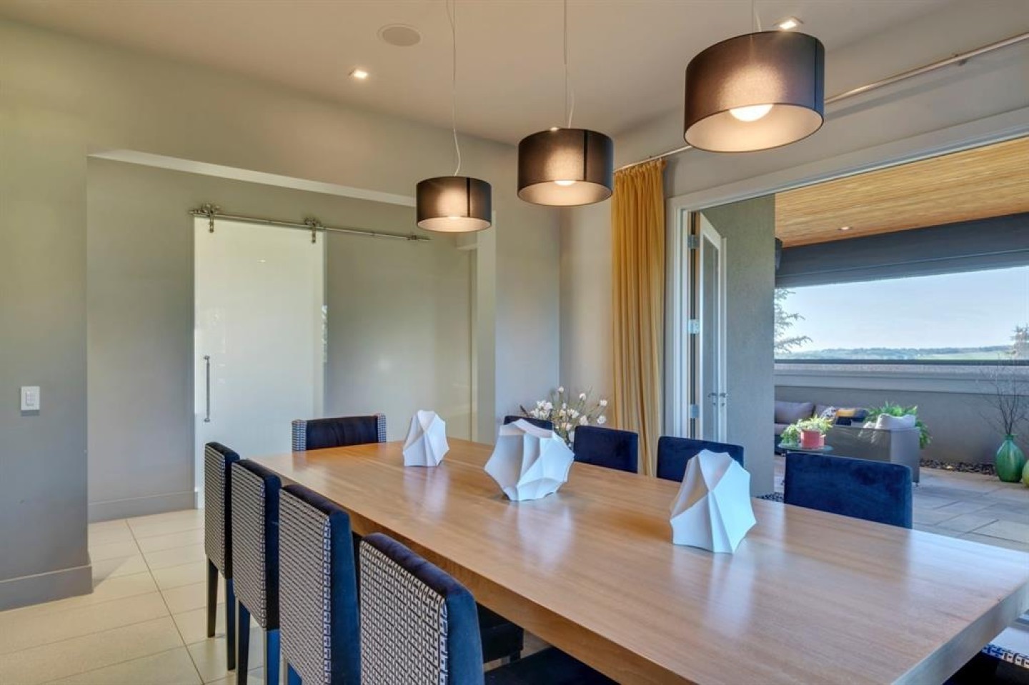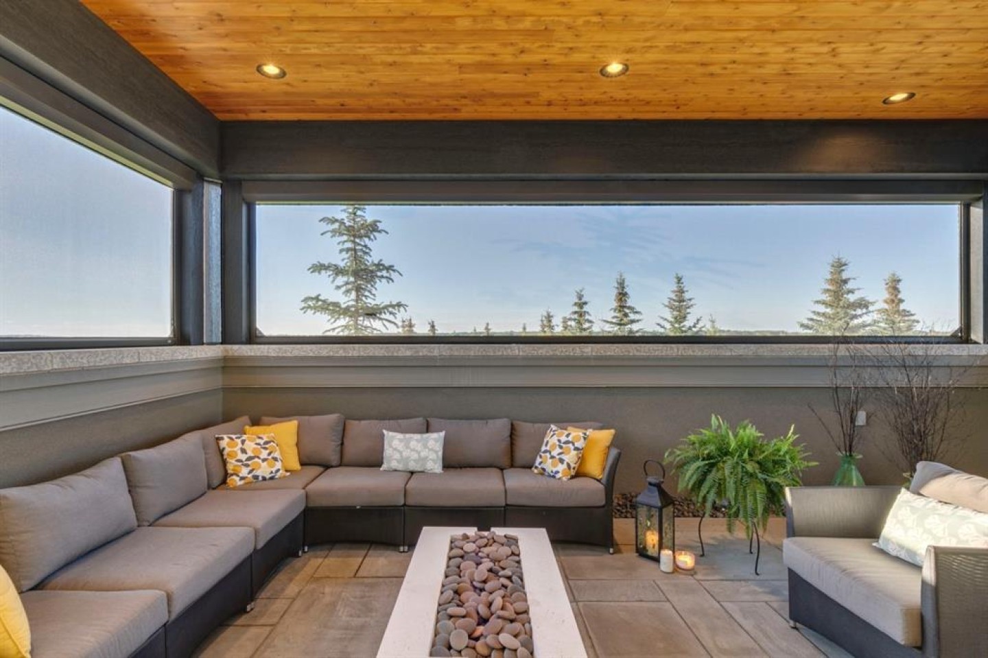 Architecturally inspired by Frank Lloyd Wright and designed to capture breathtaking west-facing views of the Rocky Mountains, this Built Green & Gold Certified, energy efficient estate is one of the most exceptional homes in Bearspaw. Thoughtfully curated on 2.91 pristine acres at the end of a quiet cul-de-sac, this 5 bedroom, 7 bath residence offers over 6,200 sq ft of developed living space, all warmed & cooled via advanced geothermal technology with in-floor heating. Striking floor-to-ceiling commercial grade windows frame the dramatic mountain vistas throughout the home. The chef’s kitchen is impeccably appointed with full Sub-Zero fridge & freezer, six-burner Wolf cooktop, custom hood fan, dual Wolf convection wall ovens, Wolf warming drawer, & Miele dishwasher & coffee station. A substantial quartz island provides abundant prep space, while the built-in kitchen table finished in Capolavoro honed granite adds warmth & texture. Entertain effortlessly as a 15.5-ft NanaWall opens to the spectacular backyard oasis, featuring a built-in Lynx BBQ, custom water feature, natural gas fireplace, & professionally designed landscaping with automated irrigation. The seamless indoor-outdoor flow is ideal for hosting gatherings large &/or small. The main level is completed by a spacious living area with dual-sided fireplace, a west-facing home office filled with natural light, formal dining room well suited for large gatherings, & a well-designed mudroom with extensive built-ins, laundry facilities, & a second floor laundry chute. A covered courtyard with motorized screens, sound system, & natural gas fire table creates an inviting outdoor lounge experience. A bright breezeway connects to the heated 4+ car garage, complete with dog wash & EV charging. The upper level hosts four generous bedrooms. The primary suite & fourth bedroom each feature private ensuites, while the second & third bedrooms share a Jack & Jill bath. The primary retreat rivals a six-star hotel, showcasing a custom built-in king bed & a Holt Renfrew-inspired walk-in dressing room. A thoughtfully designed kids’ media area completes this level. The walkout lower level is equally impressive, offering guest quarters, a media room with blackout blinds, custom banquet seating, wine room, wet bar, & a fitness studio with direct access to the private salt water hot tub. The spa-inspired bathroom features a rainfall steam shower & large infrared sauna, creating the perfect space for healthy detox & rejuvenation. A full Control4 smart home system provides advanced automation (lighting, audio video, temperature, blinds, irrigation, + security) all accessible via your smartphone. The property also has a radon mitigation system & reverse osmosis water throughout. Ideally located with quick access to the mountains, the airport, & the downtown core, this remarkable property offers a rare blend of architectural distinction, cutting-edge technology, & serene natural beauty, call for more information!