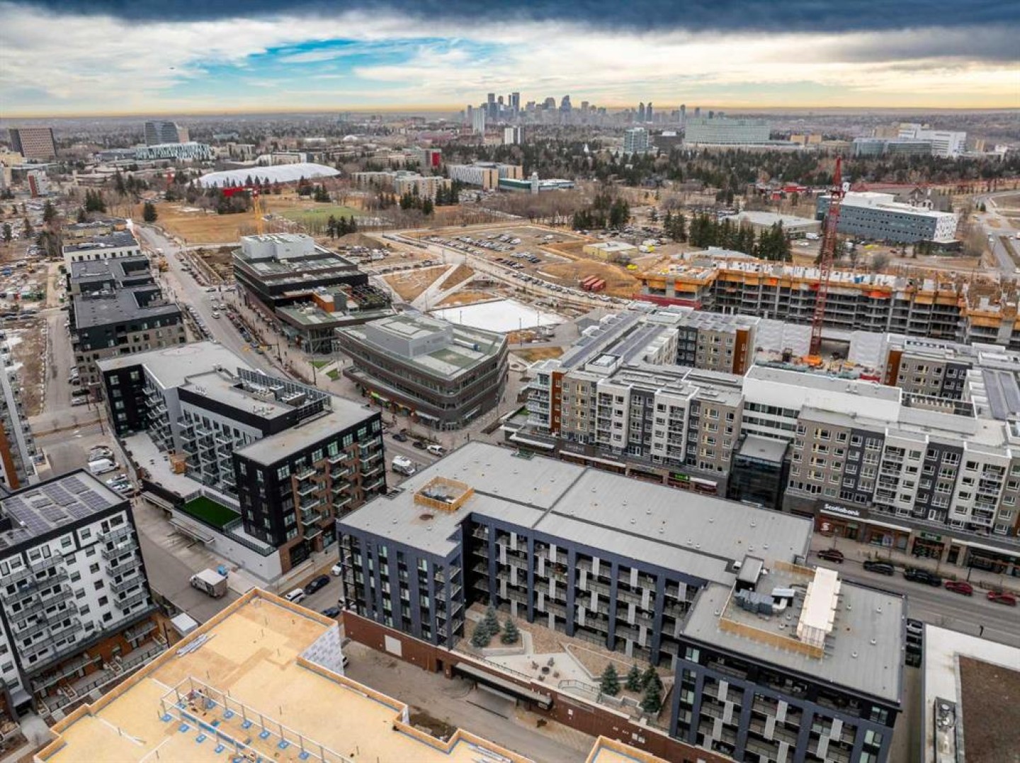 Welcome to this stylish 1-bedroom condo located in the vibrant and highly desirable University District, offering modern living in one of the city’s most dynamic and walkable communities. Situated in the sought-after August building, this home combines contemporary design, thoughtful functionality, and exceptional location. The open-concept layout is highlighted by modern finishes and clean architectural lines, creating a bright and inviting living space. The well-appointed kitchen features sleek cabinetry, quality appliances, and ample counter space, flowing seamlessly into the living and dining areas—perfect for both everyday living and entertaining. Large windows bring in abundant natural light and lead out to the oversized deck, an ideal spot to relax, host guests, or enjoy outdoor living in an urban setting. The spacious bedroom offers a comfortable retreat with a generous walk in closet, while the stylish bathroom complements the home’s modern aesthetic. Added conveniences include in-suite laundry and in-suite storage, providing practicality without compromising design. This unit also comes with a titled underground parking stall, secured underground storage locker, and the peace of mind that comes with a well-maintained, secure building. The August building is known for its contemporary style and prime location within University District. Enjoy unparalleled access to restaurants, cafés, grocery stores, HOT YOGA (my first choice!), fitness studios, parks, and transit, all just steps from your door, along with proximity to the University of Calgary, Foothills Medical Centre, and Alberta Children’s Hospital. The Bow River pathway system is a short walk from the University District. And whether you’re a professional, student, or investor, this beautifully designed condo offers a low-maintenance lifestyle in one of the city’s most exciting communities.