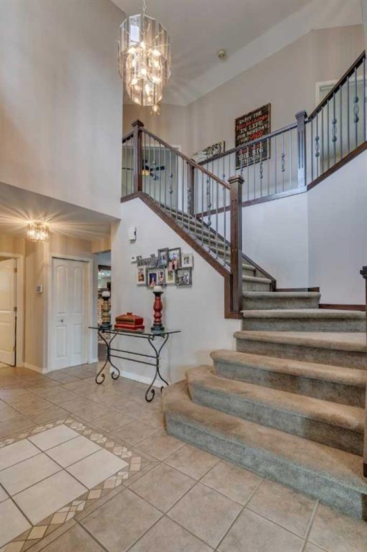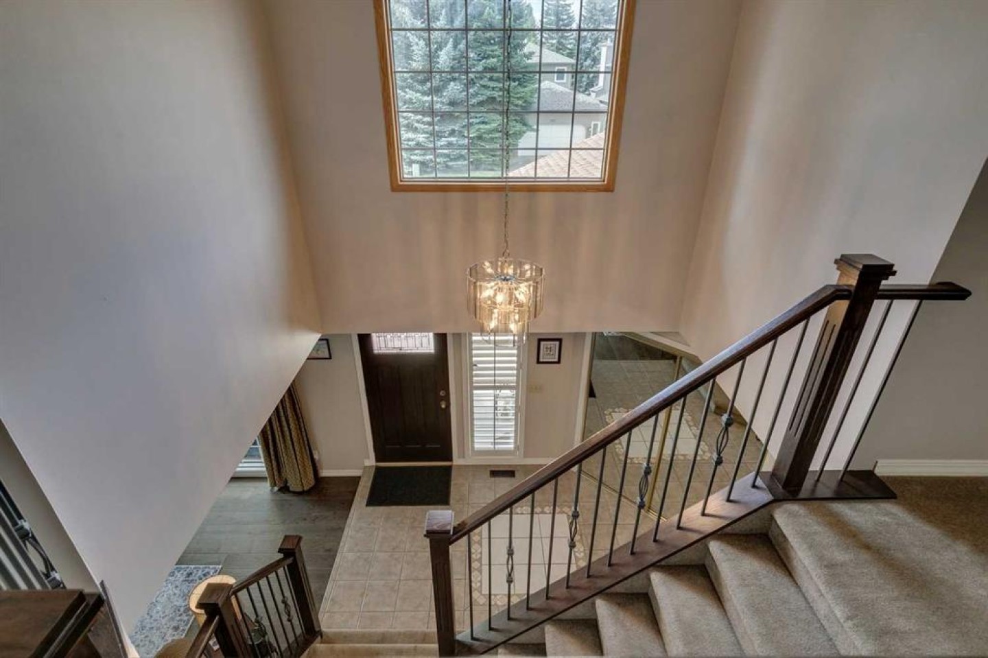 * SEE SUMMER VIDEO * This exceptional family home offers 2,919 SQ. FT. of thoughtfully designed living space, blending timeless character with modern updates. A true standout, it features FOUR BEDROOMS UPSTAIRS plus a fully finished basement—an increasingly rare and highly desirable layout for families. Proudly maintained by the ORIGINAL OWNERS, the home welcomes you with a grand foyer, expansive windows, engineered flooring, and elegant cast-iron railings. The bright kitchen showcases white cabinetry, granite countertops, a corner pantry, Samsung appliances, and a sunlit breakfast nook, complemented by a formal dining room ideal for entertaining. The living room is anchored by a charming wood-burning brick fireplace with built-ins, while a versatile front flex room offers the perfect home office or retreat. Upstairs truly shines with FOUR GENEROUS BEDROOMS, including a private primary suite with double closets and an ensuite featuring a jetted tub and separate shower. Three additional bedrooms and a full bath complete the upper level. The fully finished basement adds exceptional flexibility with a large recreation room, family room, and bar—perfect for entertaining or relaxing. Outside, enjoy a private backyard ready for summer gatherings. Recent upgrades include a BRAND-NEW ROOF, newer furnace and hot water tank, fresh exterior paint, custom blinds plantation shutters and many windows have been also replaced! Ideally located steps from parks, schools, Douglasdale Golf Course, shopping, Deerfoot Trail, Bow River pathways, and Fish Creek Park—this home delivers space, comfort, and lifestyle in one of Calgary’s most desirable communities. Book your private showing today!
