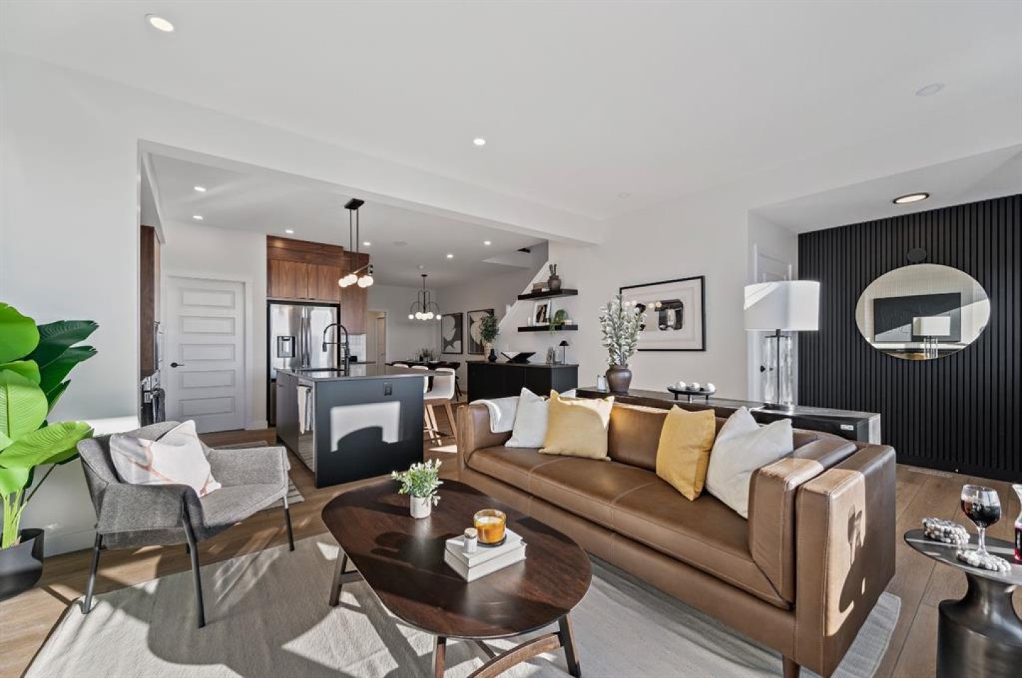 Welcome to the “Delilah” by Genesis Builders Group in the vibrant new community of Keystone Creek! This beautifully crafted home offers over 2,100 sq ft of beautifully designed space with 3 spacious bedrooms, 2.5 bathrooms, a main-floor office, and a rough-in for a future basement suite "legal suite subject to approval and permitting by the city/municipality", with a separate entrance. Step inside to airy 9’ ceilings and an inviting colour palette. A front flex room creates the perfect space for a home office or study, while a conveniently placed powder room adds everyday ease. The dining area flows effortlessly into the centrally located kitchen, which showcases quartz countertops, sleek stainless steel appliances and ample cabinetry with an island perfect for entertaining. The sun-drenched living room offers direct access to the sunny SOUTH-facing backyard, where a generous 9’6” x 10’ rear deck invites outdoor dining and relaxation. A functional mudroom off the double-attached garage completes this level and enhances everyday convenience. Upstairs, you’ll find a thoughtfully designed layout highlighted by a centrally located bonus room, beautifully illuminated by additional pot lights and large windows, offering excellent separation between sleeping areas. The spacious primary retreat features an expanded, upgraded ensuite complete with a soaker tub, walk-in shower, and dual sinks, along with a large walk-in closet. The second bedroom is well-sized, while the third bedroom impresses with its own walk-in closet. A full bathroom and convenient upper-floor laundry complete this level, while the impressive 72” x 48” picture window in the stairwell floods the home with natural light throughout. The unfinished basement continues the home’s thoughtful design with 9’ ceilings, its own private entrance, and a 1-bedroom legal suite rough-in, creating incredible flexibility for future development or income potential. The home is also equipped with added gas lines to both the BBQ location and the future gas range. Keystone Creek is one of Calgary’s newest and most exciting master-planned communities, offering a lifestyle that blends nature, connectivity, and urban convenience. With quick access to Stoney Trail, Deerfoot Trail, transit routes, shopping, dining, and recreation, Keystone Creek is perfectly positioned for families, professionals, and investors alike. PHOTOS ARE OF THE SHOW HOME and are representative. Taxes have not been assessed. RMS has been applied to builder blueprints.