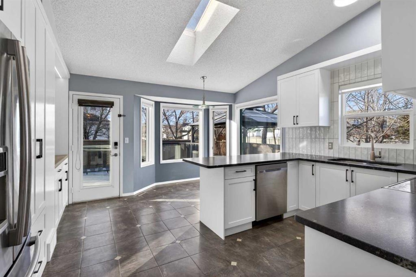 This corner-lot former showhome in Douglasdale is perfect for growing families that want space for kids to grow and a renovated home with big updates already handled. Inside, the kitchen has been newly renovated and expanded with built-in cabinets across the entire side wall that serves perfectly as a coffee station/dry food storage. The floors were fully refinished, keeping the high quality feeling of real hardwood while giving it a modern look. All carpet is new (2026) and thicker than most, making it noticeably more comfortable and warmer during colder months. Upstairs there are three bedrooms, one being a primary with its own 3-piece bathroom and walk in closet. Upstairs also includes a full bathroom for the other two bedrooms to share. A fourth bedroom and 3 piece bathroom are located on the lower level, perfect for guests, older kids, or a home office. The basement has a large recreation room that can be used as a play area, media room, or extra living space. Outside, the backyard is set up to be low maintenance with thoughtful features making it easy to enjoy. There are motion-sensor lights across the side entrance fencing that light up automatically at night when someone walks by, which is nice for both safety and convenience. There's also a shed for extra storage. Important safety and quality of life updates have already been taken care of including full replacement of entire Poly-B piping system (2025) for peace of mind, a newer hot water tank (2023), newer windows, custom honeycomb blinds on nearly all windows, and air conditioning. With the major updates already done, this is a home you can move into and enjoy without worrying about big projects.