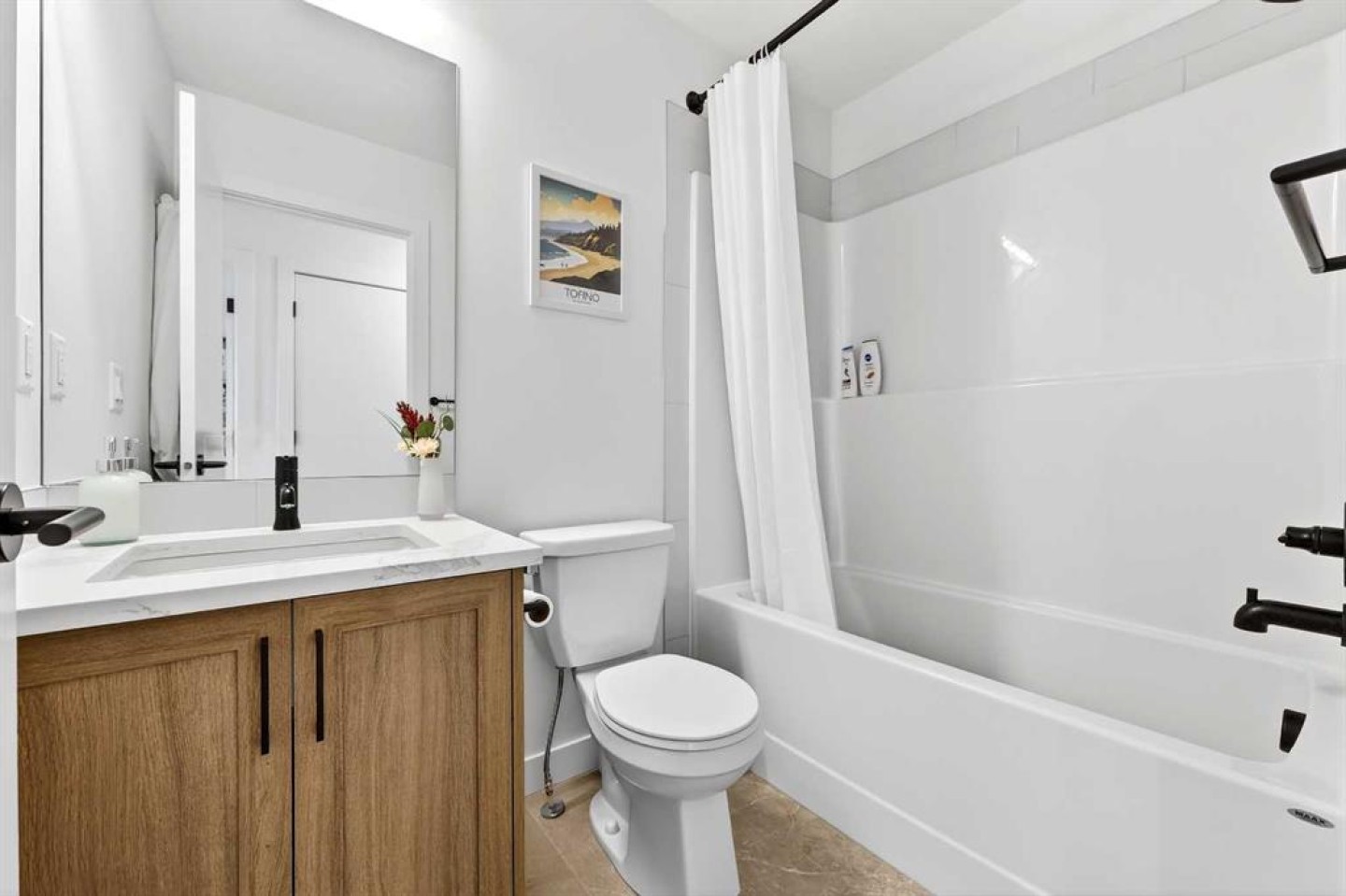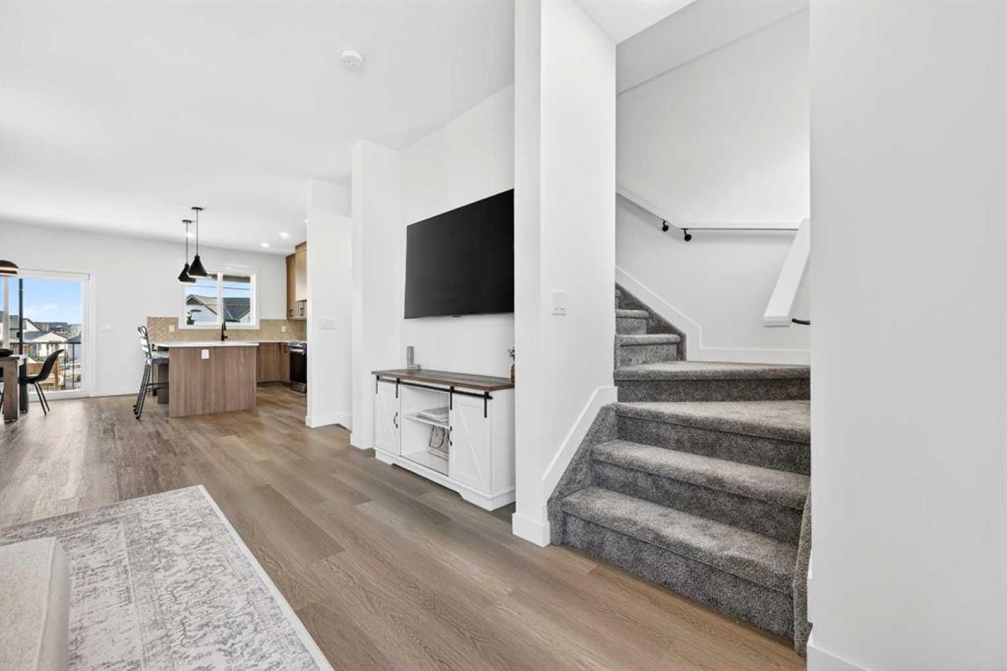 Open House Saturday February 21st 2:00pm-4:00pm and Sunday February 22nd 12:00pm-2:00pm. Welcome to #1604 – 201 Cooperswood Green SW, a beautifully designed 3-storey Village Townhome in the highly sought-after Vesta Elevate Collection in Cooper’s Crossing, an 11-time winner of Airdrie’s Best Community Award. Blending modern contemporary architecture with upscale interior finishes, this home offers exceptional style, functionality, and an unbeatable location. The thoughtfully designed open-concept layout features 3 bedrooms, 2.5 bathrooms, and a versatile flex room ideal for a home office, gym, or additional living space. The bright and spacious main floor is perfect for both everyday living and entertaining. The gourmet kitchen is a true highlight, complete with full-height cabinetry to the ceiling, sleek modern finishes, generous prep space, and a layout that flows seamlessly into the dining and living areas. A convenient main floor powder room adds comfort and practicality for guests. Upstairs, the deluxe primary suite provides a private retreat, while the secondary bedrooms are impressively sized compared to most townhome layouts, offering flexibility for families, guests, or work-from-home needs. The overall design maximizes space, natural light, and livability across all three levels. Parking is never a concern with a double attached garage plus two additional private driveway stalls — a rare and valuable feature in townhome living. Located directly across from Cooper’s Town Promenade, you’ll enjoy walkable access to Save-On-Foods, Starbucks, McDonald’s, Shoppers Drug Mart, Pet Value, and everyday amenities. Parks, pathways, schools, and green spaces are all nearby, making this an ideal home for professionals, families, or investors looking to be in one of Airdrie’s premier communities. This is an opportunity to own a stylish, low-maintenance home in a vibrant, award-winning neighborhood where convenience meets elevated living.