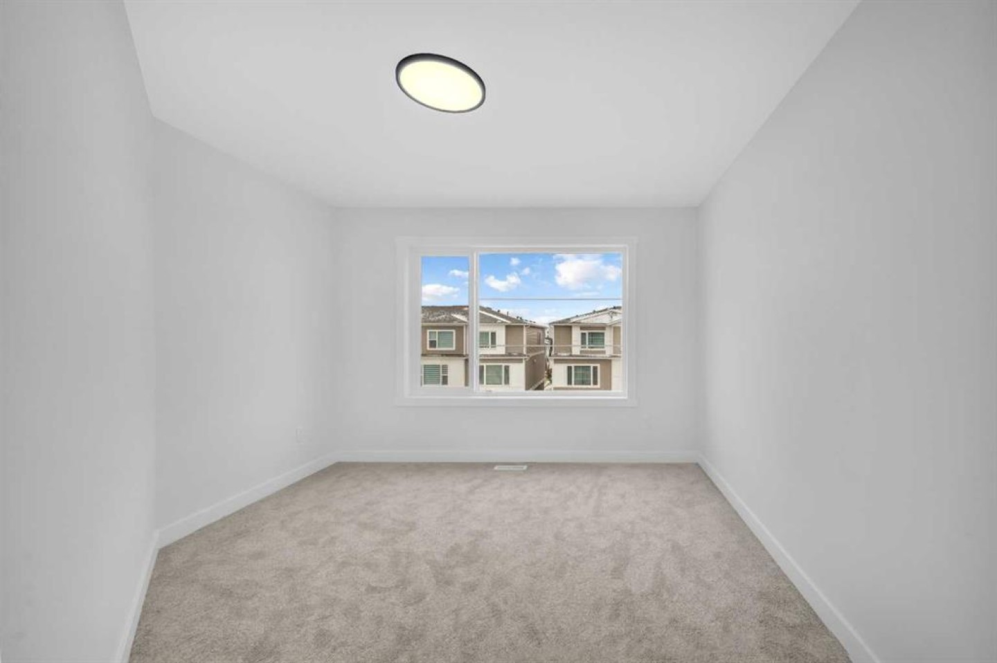 **END UNIT FOR SALE** Welcome to this stunning, brand-new three-storey townhouse located in the highly sought-after Saddlepeace (Saddleridge) neighborhood. This modern home offers a perfect balance of luxury and functionality, designed with today’s lifestyle in mind. Situated just minutes away from a variety of essential amenities, including gurdwaras, multiple commercial plazas, and excellent schools, this townhouse is ideally located for convenience and comfort. Plus, with only a 5-minute drive to the airport and a 15-minute drive to Cross Iron Mills Mall, you'll have everything you need within easy reach. As you step inside, you'll be welcomed by the bright and spacious open-concept main floor, featuring a stylish living area, a formal dining space, and a beautiful kitchen designed for the modern chef. The kitchen is a true highlight, showcasing gorgeous quartz countertops, high-end stainless steel appliances, a gas stove, and a wealth of cabinetry, offering plenty of storage for all your cooking essentials. The 9-foot ceilings on the main floor create an expansive, airy atmosphere, while the durable vinyl flooring adds a sleek, contemporary touch that’s both practical and easy to maintain. The main floor also features a large balcony, perfect for relaxing or hosting guests on warm evenings. Upstairs, the home continues to impress with three spacious bedrooms, including a luxurious master suite. The master bedroom is a true retreat, complete with a large walk-in closet and a full ensuite bathroom, ensuring a private and comfortable space to unwind. The two additional bedrooms are generously sized, offering flexibility for family, guests, or even a home office. The upper level also includes a convenient laundry room, making laundry chores easier than ever. Looking for extra income potential or more space for family and guests? The lower level offers a fully private bedroom with a full ensuite bathroom, complete with its own separate laundry area. This self-contained space is perfect for renting out, offering long-term rental opportunities or providing independent living for extended family members. The townhouse also features a large single attached garage, providing ample storage and parking space, ensuring that your vehicles and belongings are always secure and protected. Whether you're hosting gatherings, enjoying quiet family time, or seeking additional rental income, this home has it all. This beautifully designed townhouse offers everything you need for modern, convenient living in a thriving and growing community. With its spacious layout, high-end finishes, and unbeatable location, it’s the perfect place to call home. Don’t miss your chance to own this exceptional property – schedule your viewing today! RMS Measurements taken from builders plans, subject to change on completion of project.
