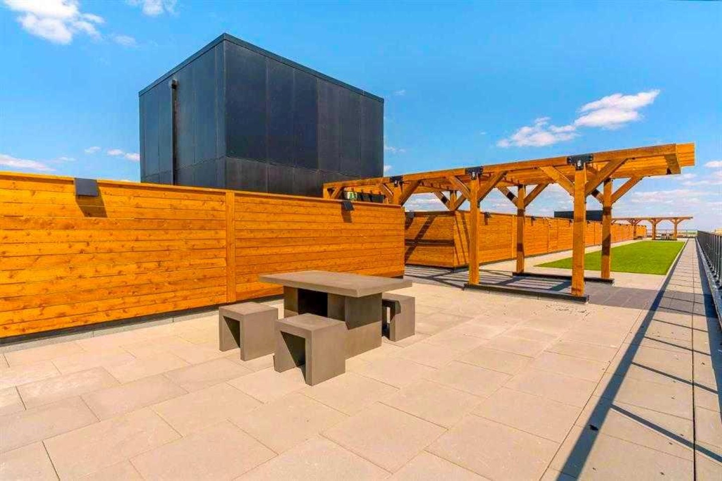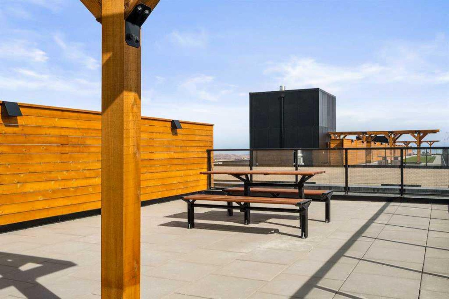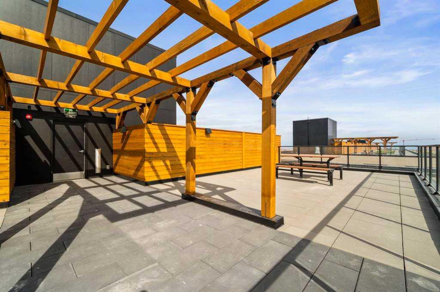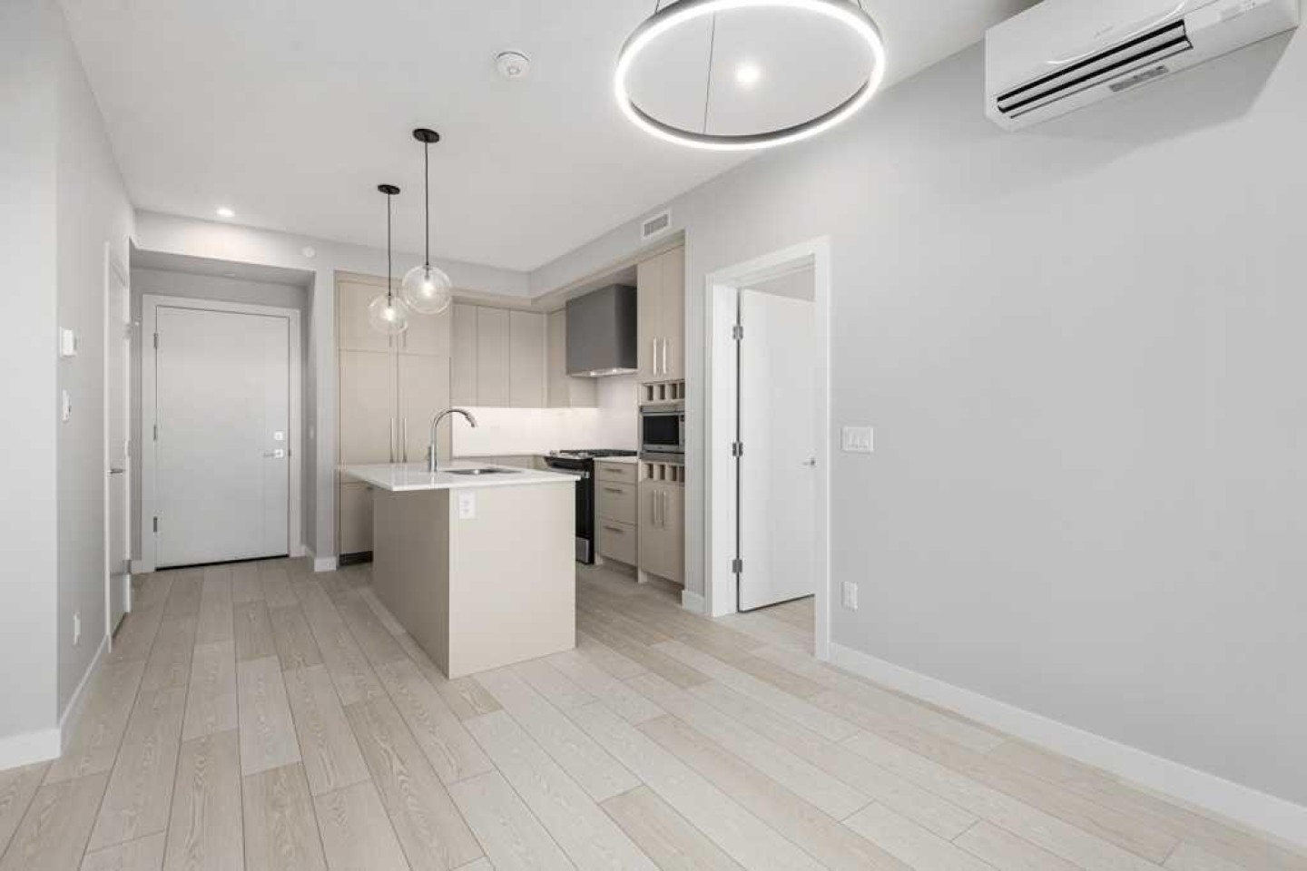 Contemporary living awaits at The Mondrian. This stylish 2 bedroom, 2 bathroom residence is beautifully curated by Truman’s award-winning design team and delivers a true “wow” factor with 9-foot ceilings, air conditioning, roller-shade window coverings, premium LVP flooring with acoustic underlay, and custom energy-efficient LED lighting throughout. The contemporary kitchen impresses with high-end, energy-saving stainless steel appliances, floor-to-ceiling ergonomic cabinetry, polished quartz countertops, and deep drawers designed for everyday function and clean modern style. Retreat to the expansive primary suite featuring a spacious walk-through closet leading to a luxe spa-inspired ensuite with a modern square-edge countertop, designer vanity, and environmentally conscious fixtures. The open-concept living area flows seamlessly to your private balcony, perfect for morning coffee or evening downtime. Enjoy the convenience of in-suite laundry, plus titled underground parking and a secure storage locker. Top it off with access to the breathtaking rooftop lounge with incredible views, all set in a vibrant community surrounded by cafés, restaurants, and boutique shops—and just a short drive to downtown or the mountains. **Some images have been virtually/digitally staged to illustrate possible furnishings and layout.