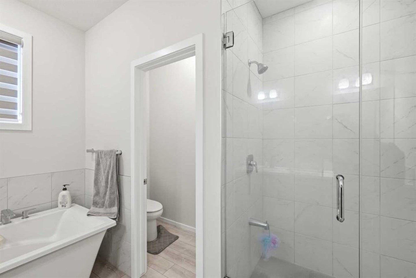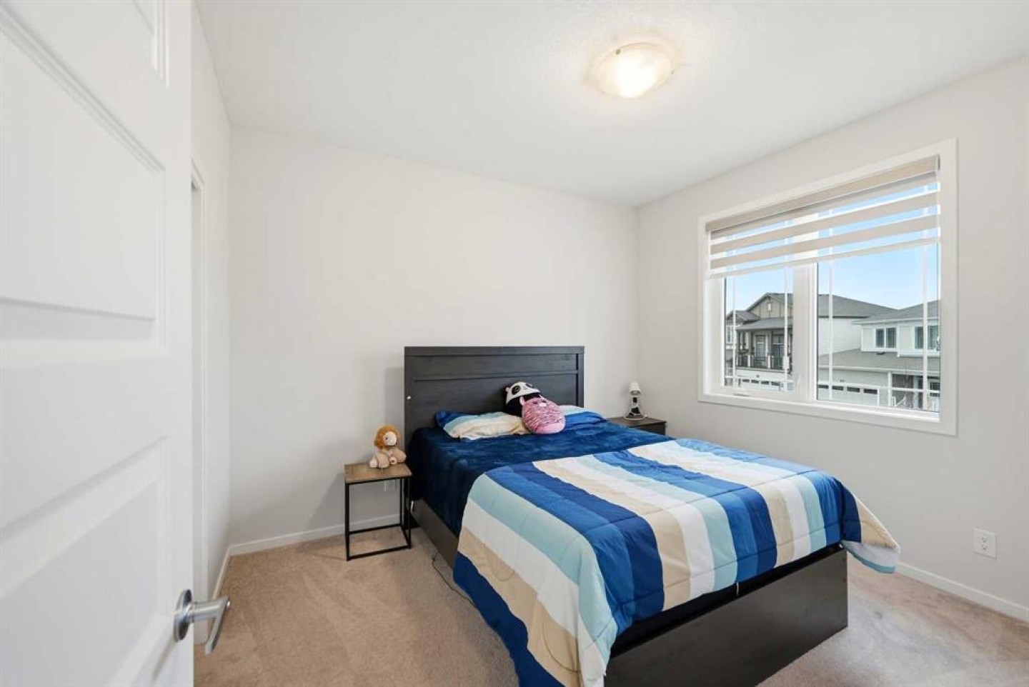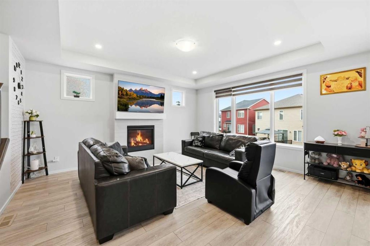 Imagine living on a premium 6,100+ sq. ft. lot with over 3,100 sq. ft. of developed living space (including basement) in this stunning 2021-built home, perfectly designed for modern family living and smart investment potential. Meticulously maintained and loaded with upgrades, this 4-bedroom, 3.5-bathroom residence offers an exceptional blend of comfort, functionality, and income opportunity. Upstaits is 2199.87 sqft and basement brings additional sqft. The main floor welcomes you with a bright open-concept layout featuring a spacious living room with a gas fireplace and feature wall, a chef-inspired kitchen complete with quartz countertops, fully upgraded stainless steel appliances, gas stove, and a convenient walk-through pantry. A large dining area overlooks the expansive backyard, and the oversized deck provides the perfect setting for outdoor entertaining. A stylish half bath completes the main level. Upstairs, you’ll find a generous bonus room with an electric fireplace, ideal for family gatherings or a cozy retreat. The luxurious primary bedroom features a 5-piece ensuite with double sinks, a custom standing shower, and elegant finishes. Additional highlights include upper-floor laundry, upgraded oak railings, and well-sized secondary bedrooms. The fully developed walkout basement offers a one-bedroom illegal suite with its own kitchen, full bathroom, separate laundry, and spacious living area— providing excellent financial flexibility options. Located in one of Airdrie’s most desirable communities, you’re within close proximity to multiple schools, shopping plazas, playgrounds, and everyday conveniences. Osborne Park is just 500 meters away, Windsong Boulevard Park only 600 meters, Save-On-Foods is 1.7 km (approx. 5 minutes), and CrossIron Mills is just less than 10 minute drive. Enjoy easy access to Calgary while living in a peaceful, family-friendly setting. With its oversized lot, upgraded finishes, walkout income potential, and unbeatable location, this move-in-ready home is a rare opportunity for growing families and savvy buyers alike.