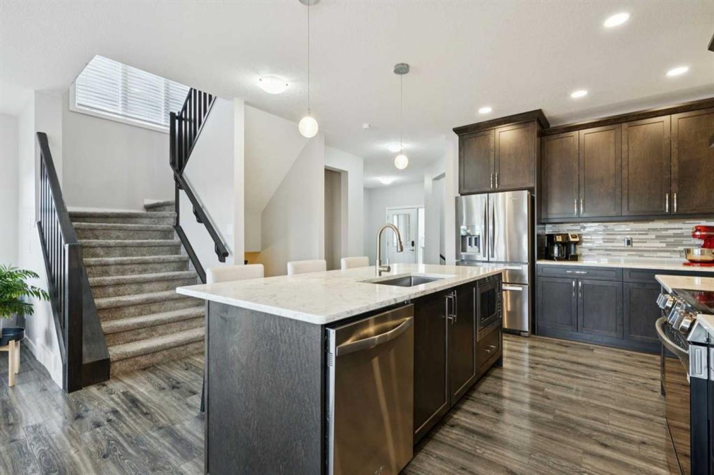 If you are looking to be on the south end of Airdrie in a home that checks every box—4 bedrooms up, a triple tandem garage, and a walkout backing onto a green space—we have got you covered! Welcome to 331 Hillcrest Heights, a bright and beautiful "Built Green" home by Excel Homes. As you come in the front door, you’re going to notice there’s a pile of windows in this place, flooding the main floor with light. These are upgraded triple-pane windows throughout , and they’ve been outfitted with high-end California shutters, which is a really, really nice touch. The kitchen sits right in the centre of the home and it is wide open, featuring a massive island, a beautiful stainless hood fan, and upgraded appliances. What’s cool about this layout is just off to the side is where the big walk-in pantry is hidden, providing tons of storage, and as you get to it, there’s actually a dedicated homework station there too. The rest of the main floor features a large, open family room with a nice gas fireplace and mantel, plus a great dining space that leads out to your upper deck, which comes ready with a gas hookup for your BBQ. Heading up the stairs, what’s really cool about this plan is that the spacious bonus room is actually in the middle of the upper floor. That means the primary suite is separated from the other bedrooms for added privacy. And yes, this one has four bedrooms up, and they are all a great size. A major bonus is that one of the secondary bedrooms actually has its own ensuite—so we’ve got two ensuites on the top floor alone! If you have a teenager wanting their own space or maybe a nanny living with you, it’s a really, really cool feature to have. The garage is equally impressive; it is a double car garage with a tandem den that can be used for a 3rd small car , featuring a mezzanine for extra storage and a 240v plug for a heater. Now, the basement. It is a walkout basement featuring a fully certified, soundproofed legal suite with its own entrance, walkway, and even its own mailbox. This suite is completely self-contained with a full kitchen and separate heating source , currently generating $1,450 a month with utilities included. The walkout leads to a beautiful backyard and green space where they’ve spent a bunch of money on a stamped concrete pad with a fire pit , plus there is a hot tub plug conveniently located by the door. Hillcrest is a quiet neighbourhood and a pet-friendly community , located within walking distance to a dog park and the Northcott Prairie K-9 school. It is super convenient for commuters, as you are only a 3-minute drive to the new 40th Ave exit for an easy drive to downtown , and just 10 minutes from CrossIron Mills and Costco. You are also just walking distance from the Coopers Town Promenade for all your shopping and dining needs. Come and see 331 Hillcrest Heights! For more information, photos, and guided 360 tour, click the links below.