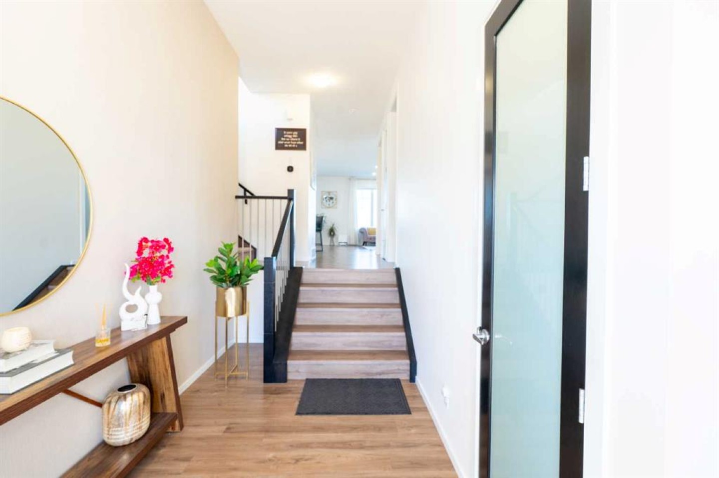 Welcome to 228 Windrow Link SW — perfectly positioned on one of the most desirable premium walkout lots in the community, backing directly onto a serene pond with unobstructed water views and facing a park right out front. With no homes directly in front or behind, this property offers exceptional privacy, abundant natural light, and a truly balanced indoor-outdoor lifestyle in a family-friendly setting. Thoughtfully designed with both everyday functionality and elevated style in mind, the bright open-concept main floor features luxury vinyl plank flooring and expansive windows that flood the home with light from both exposures. The spacious great room offers a loft-inspired feel and is anchored by an upgraded electric fireplace set against a striking modern black panel accent wall — creating a warm yet contemporary focal point. The kitchen is the true showpiece of the home. A custom oversized quartz island with elegant curved edges creates a softer, more organic flow than traditional rectangular islands, making it the perfect gathering space for entertaining, casual dining, or hosting family and friends. The island is finished with matching cabinetry panels for a refined, built-in furniture look and offers generous seating and prep space. The kitchen is further enhanced with full-height cabinetry, sleek built-in appliances, stainless steel finishes, and a clean modern aesthetic. A separate spice kitchen adds exceptional functionality — ideal for keeping the main kitchen immaculate while preparing meals. A dedicated main floor office provides valuable flexibility for remote work or study. Upstairs you’ll find four generously sized bedrooms, including a well-appointed primary retreat complete with a walk-in closet and ensuite bath. The upper layout is designed with comfort and practicality in mind — ideal for growing families or multigenerational living. The walkout basement presents incredible future potential — whether for extended family living, recreation space, or income-generating possibilities (subject to approvals). Step outside to the upgraded glass-railed deck and take in the uninterrupted pond views — a stunning backdrop for summer evenings and morning coffee. A rare opportunity to own a premium walkout lot with water views in one of Airdrie’s most sought-after communities. Location, layout, design, and lifestyle — this home truly stands apart.