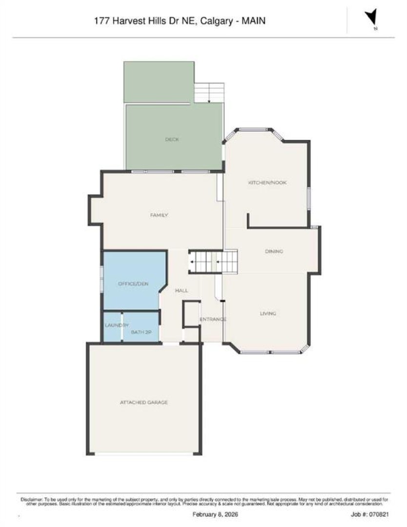 Welcome to this warm and inviting home in the sought-after community of Harvest Hills, known for its quiet streets, walking paths, parks, and easy access to everyday amenities. With quick connections to major roads such as Deerfoot Trail, shopping, schools, and the Calgary International Airport, this location offers both comfort and convenience for busy families and professionals. Inside, the main floor features a full kitchen with a bright dining nook, along with a dedicated dining room that flows into the family room, where high vaulted ceilings create an open and welcoming feel. A half bathroom, main-floor washer and dryer, and a functional office/den with built-in desk, cabinets, and drawers add everyday practicality. Upstairs, the primary bedroom offers a comfortable retreat with a walk-in closet and full ensuite bathroom. Two additional bedrooms and another full bathroom provide plenty of space for family or guests. The fully developed basement is a great bonus space, offering a large recreation room with a wet bar, flexible space for a gym, games area, or hobby room, and a full bathroom — perfect for relaxing or hosting friends. Recent upgrades include BRAND NEW CARPETS and NEW PAINT on the main and upper levels, central vacuum, central air conditioning, and a ROOF REPLACED IN LATE 2025 with durable Class 4 asphalt shingles, giving you peace of mind for years to come.