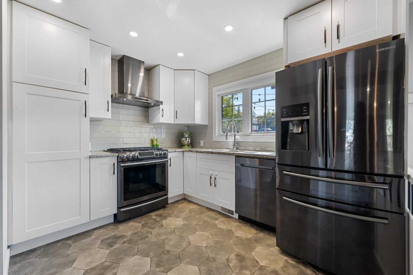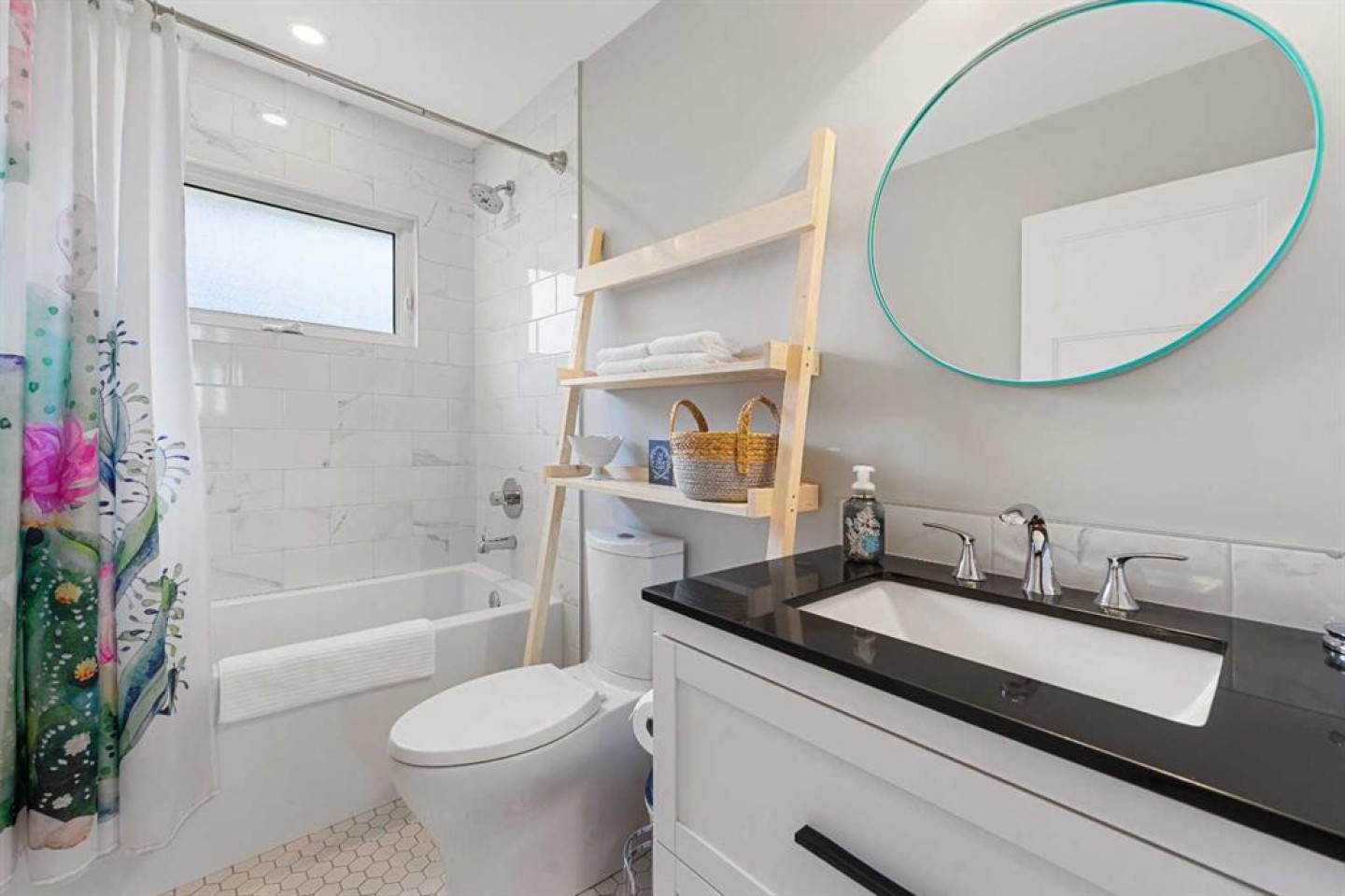 Step into this beautifully renovated home, inside and out, set on a massive lot in Fairview, a highly sought after inner city neighborhood on the rise. With new windows, modern finishes throughout, and a rare NW facing orientation, this home is flooded with natural light all day, including the bright, finished basement with mountain and city views. The inviting living room features original hardwood floors, a gas burning fireplace, and stylish modern lighting. The entire main floor was fully gutted and renovated in 2018, including new electrical, lighting, drywall, doors, trim, and fixtures while preserving the pristine hardwood. The redesigned kitchen showcases granite countertops, subway tile backsplash, slow close cabinetry, a center island with pendant lighting, durable tile flooring, and a full suite of high end black stainless appliances, including a gas stove and hood fan perfect for cooking and entertaining. The main bathroom was completely reimagined with new tile flooring, updated vanity and toilet, a large soaker tub, and a beautiful tile surround, creating a spa like retreat. The main level offers a spacious primary bedroom plus two additional generously sized bedrooms, all with hardwood floors, modern lighting, and new windows. Downstairs, the renovated basement provides an open, airy family room ideal for entertaining, along with a gym/den area, a full bathroom, and a massive fourth bedroom perfect for guests. Outside, enjoy the beautifully landscaped backyard with an expansive patio, ideal for summer evenings. The detached double garage has been fully updated with a new roof, gutters, Hardy siding, garage door and opener, and a triple pane gas filled window, plus an enormous parking pad accommodating four additional vehicles or RV parking. With unbeatable access to all parts of the city, this stunning home blends modern sophistication, space, and lifestyle ready for you to grow into or simply enjoy as your own.