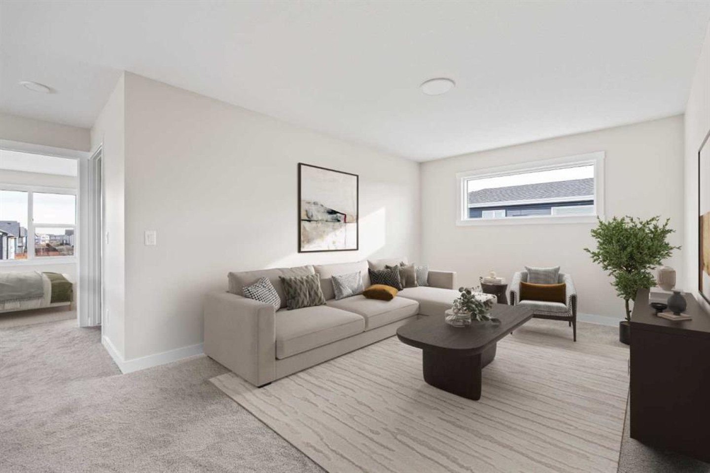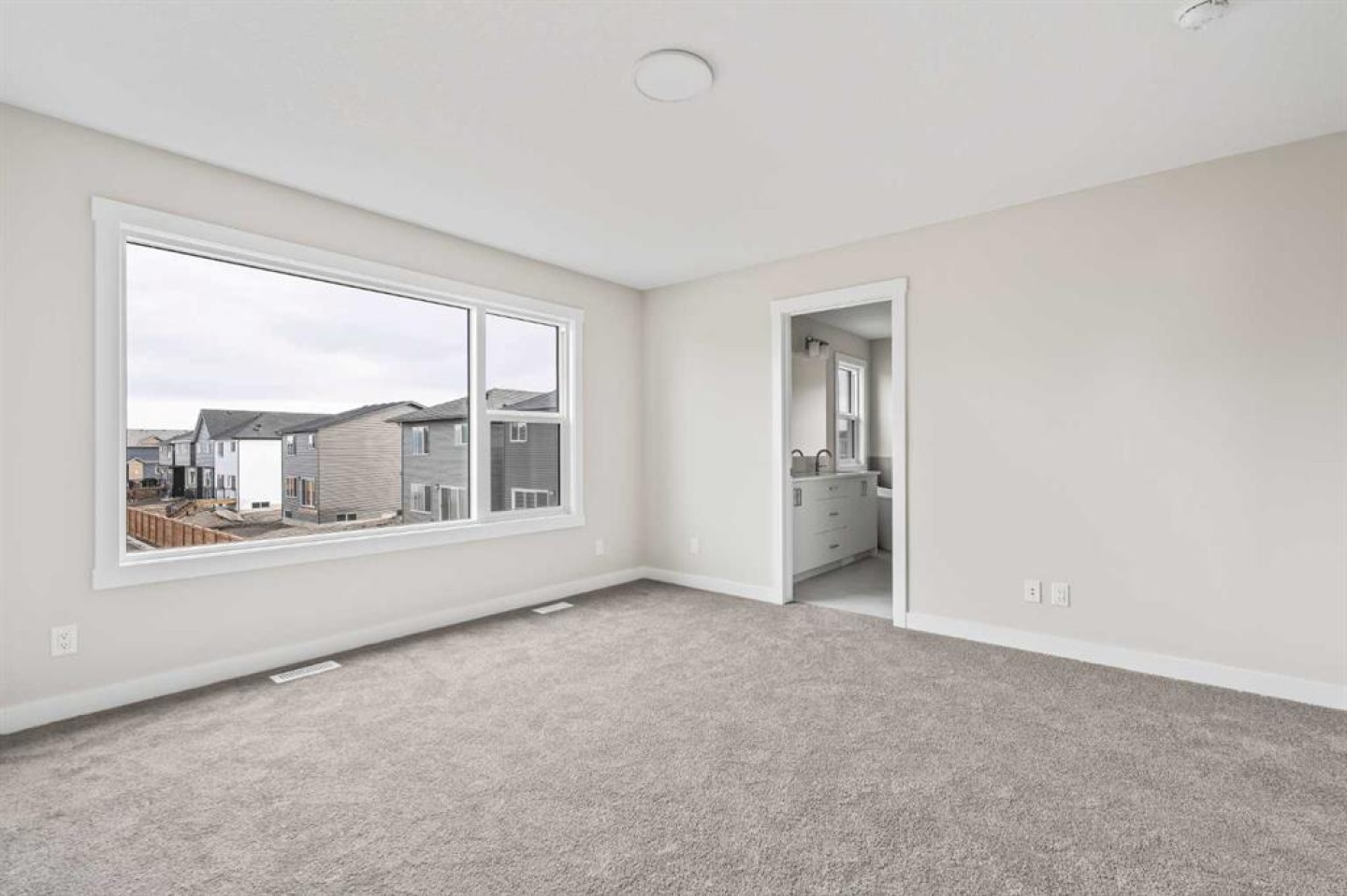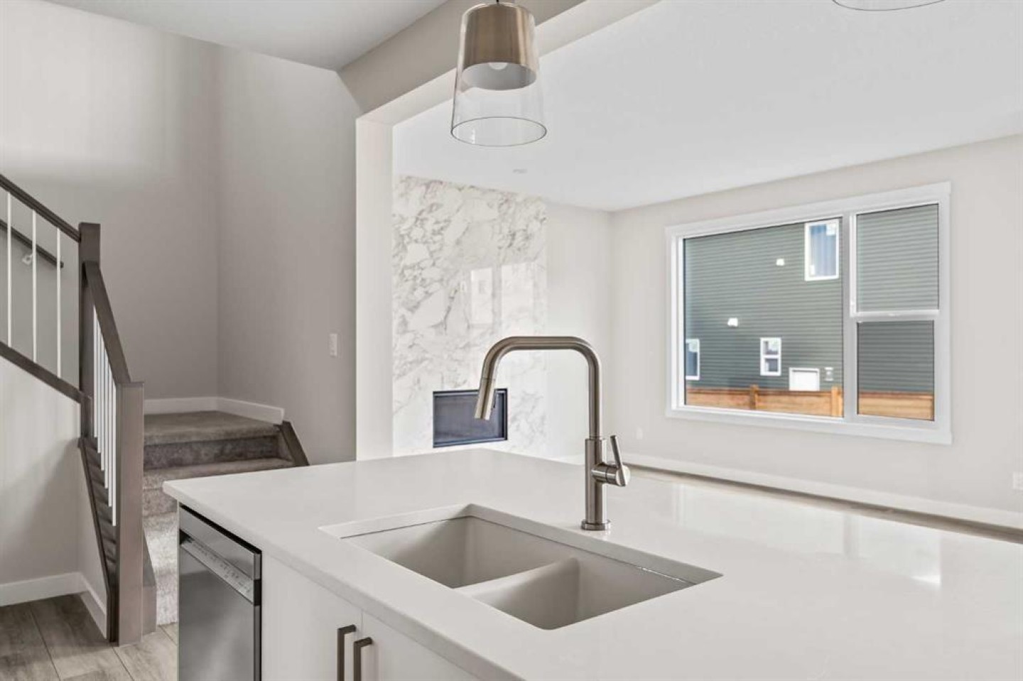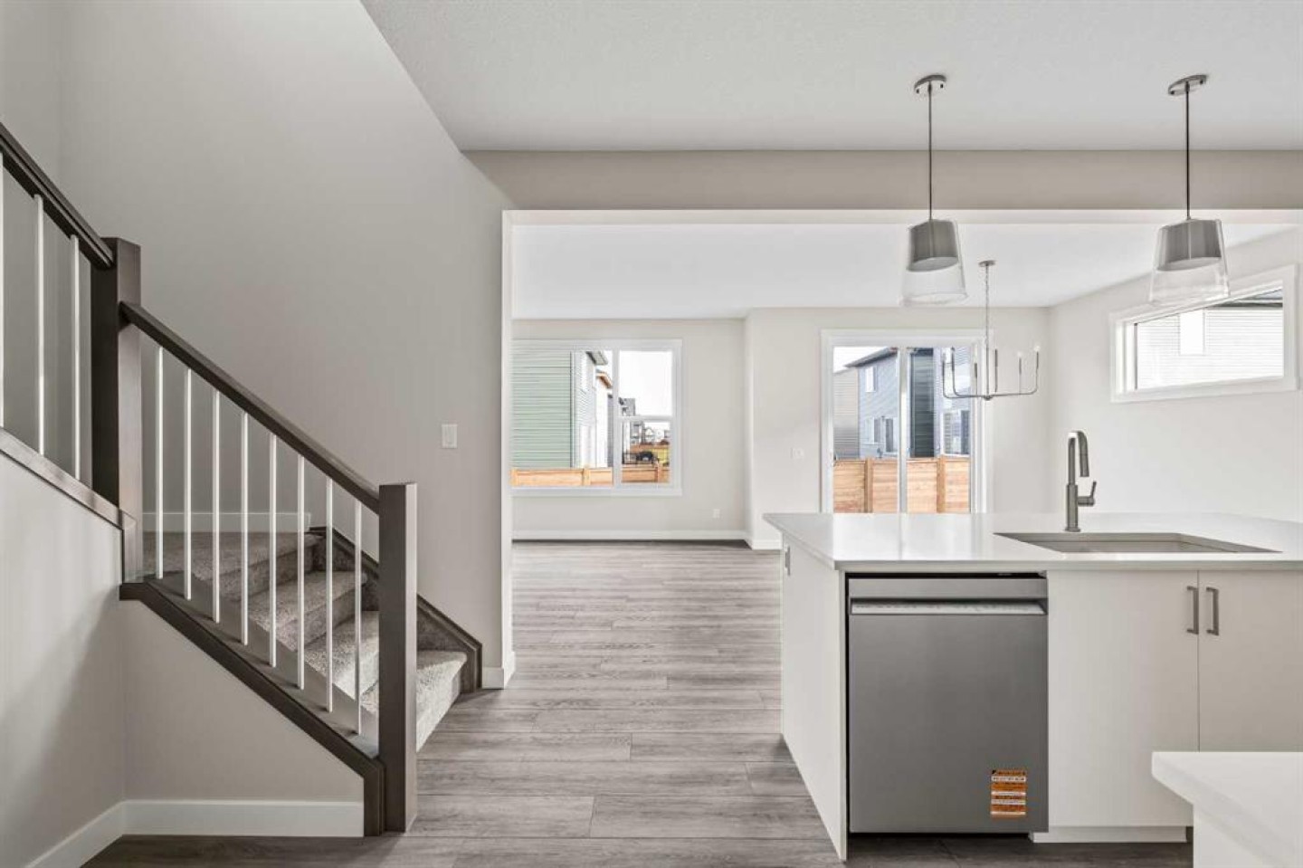 This stunning brand-new home by Brookfield Residential is move-in ready and perfectly situated in the vibrant community of Chinook Gate in Airdrie. Thoughtfully designed, the Rundle 26 offers the ideal blend of everyday comfort and elevated living with expansive living spaces, 3 bedrooms, 2.5 bathrooms, and an undeveloped basement featuring bathroom rough-ins and a separate side entrance for future development potential. The heart of the home is the beautifully appointed chef-inspired kitchen, showcasing timeless white cabinetry, light quartz countertops, floating shelves and a suite of stainless steel appliances including a built-in chimney hood fan and microwave. A large island anchors the space while the walkthrough pantry connects seamlessly to the mudroom and double attached garage - a layout designed for real life convenience. Open to both the dining area and great room, the main floor is perfectly suited for entertaining and family living. A central gas fireplace in the main level great room is the perfect addition for cozy winter nights. A wall of windows across the back of the home floods the home with natural light, while patio doors lead directly to the backyard - ideal for summer evenings. The backyard already has a gas line rough-in for a BBQ, adding to everyday convenience. Natural wood and spindle railings guide you to a central bonus room that thoughtfully separates the primary retreat from the secondary bedrooms. The spacious primary suite features a spa-inspired 5-piece ensuite with dual vanities, a soaker tub, a fully tiled walk-in shower, and a generous walk-in closet. Two additional bedrooms, a full bathroom, convenient upper-floor laundry, and ample storage complete the level. The nearly 800 sq. ft. basement offers endless possibilities - whether you envision a recreation space, additional bedrooms, a home gym, or something else, the options are endless for a growing family. Set on a bright lot, this home offers the perfect combination of indoor comfort and outdoor enjoyment. Backed by both the Builder Warranty and Alberta New Home Warranty, you can purchase with complete confidence. Move-in ready and beautifully finished, the Rundle 26 in Chinook Gate presents an exceptional opportunity for families seeking space, functionality, and the advantages of brand-new construction in one of Airdrie’s most exciting communities.