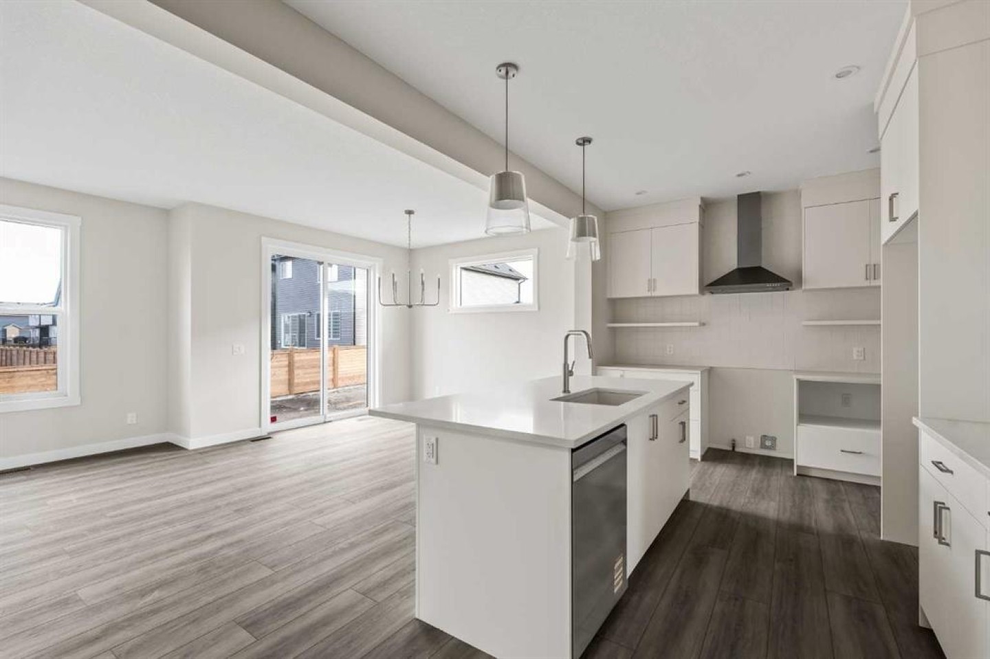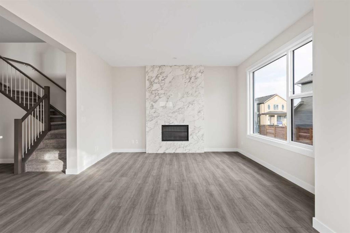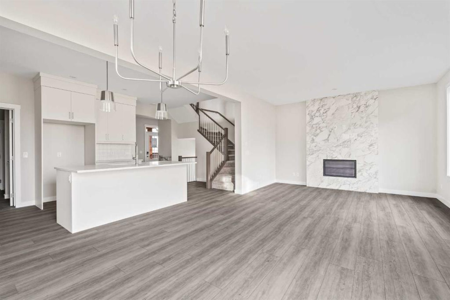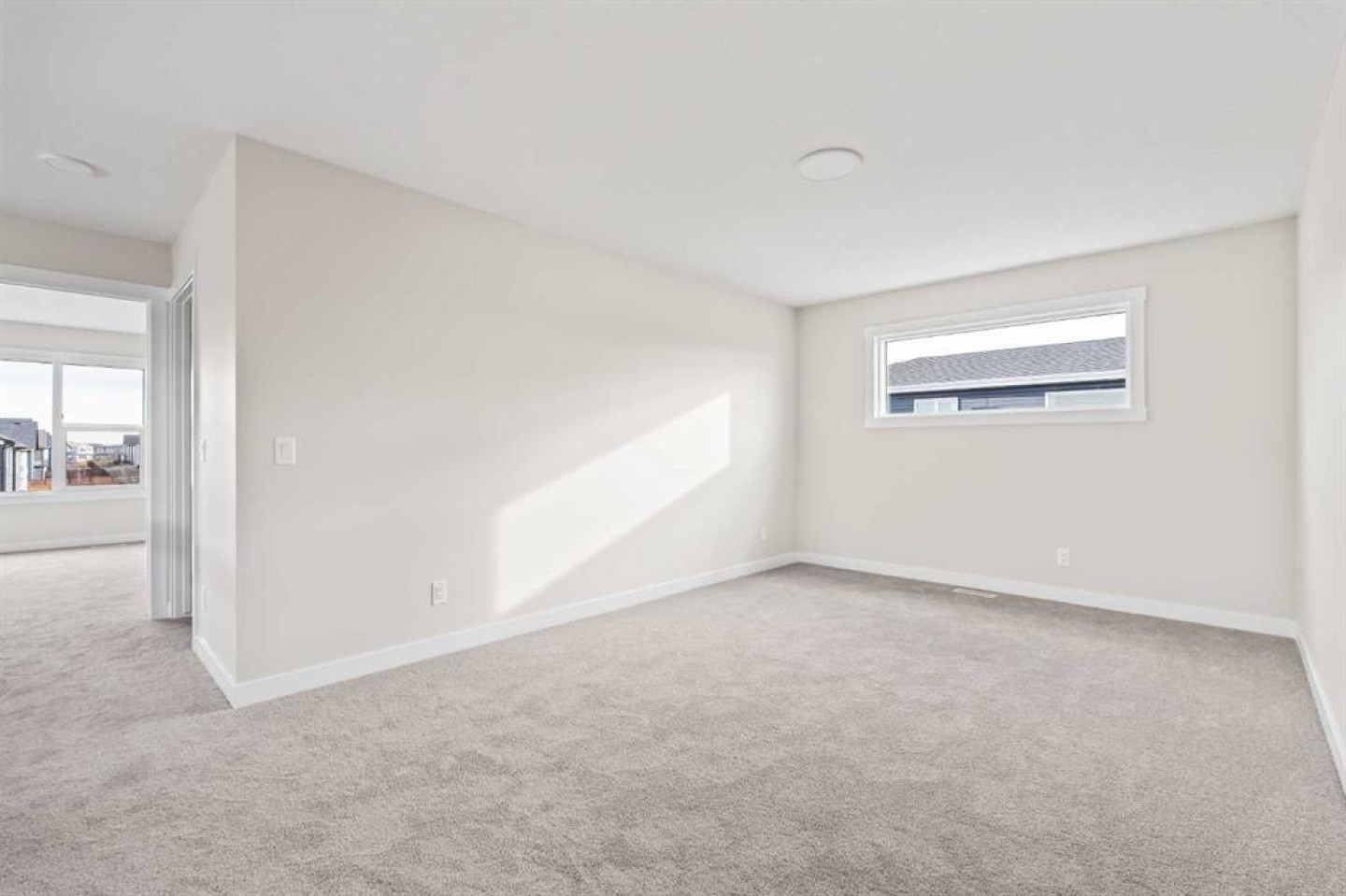 This stunning brand-new home by Brookfield Residential is move-in ready and perfectly situated in the vibrant community of Chinook Gate in Airdrie. Thoughtfully designed, the Rundle 26 offers the ideal blend of everyday comfort and elevated living with expansive living spaces, 3 bedrooms, 2.5 bathrooms, and an undeveloped basement featuring bathroom rough-ins and a separate side entrance for future development potential. The heart of the home is the beautifully appointed chef-inspired kitchen, showcasing timeless white cabinetry, light quartz countertops, floating shelves and a suite of stainless steel appliances including a built-in chimney hood fan and microwave. A large island anchors the space while the walkthrough pantry connects seamlessly to the mudroom and double attached garage - a layout designed for real life convenience. Open to both the dining area and great room, the main floor is perfectly suited for entertaining and family living. A central gas fireplace in the main level great room is the perfect addition for cozy winter nights. A wall of windows across the back of the home floods the home with natural light, while patio doors lead directly to the backyard - ideal for summer evenings. The backyard already has a gas line rough-in for a BBQ, adding to everyday convenience. Natural wood and spindle railings guide you to a central bonus room that thoughtfully separates the primary retreat from the secondary bedrooms. The spacious primary suite features a spa-inspired 5-piece ensuite with dual vanities, a soaker tub, a fully tiled walk-in shower, and a generous walk-in closet. Two additional bedrooms, a full bathroom, convenient upper-floor laundry, and ample storage complete the level. The nearly 800 sq. ft. basement offers endless possibilities - whether you envision a recreation space, additional bedrooms, a home gym, or something else, the options are endless for a growing family. Set on a bright lot, this home offers the perfect combination of indoor comfort and outdoor enjoyment. Backed by both the Builder Warranty and Alberta New Home Warranty, you can purchase with complete confidence. Move-in ready and beautifully finished, the Rundle 26 in Chinook Gate presents an exceptional opportunity for families seeking space, functionality, and the advantages of brand-new construction in one of Airdrie’s most exciting communities.