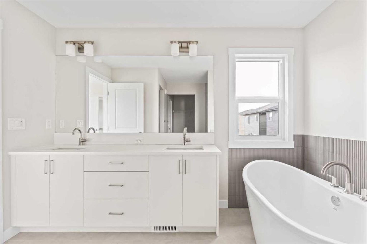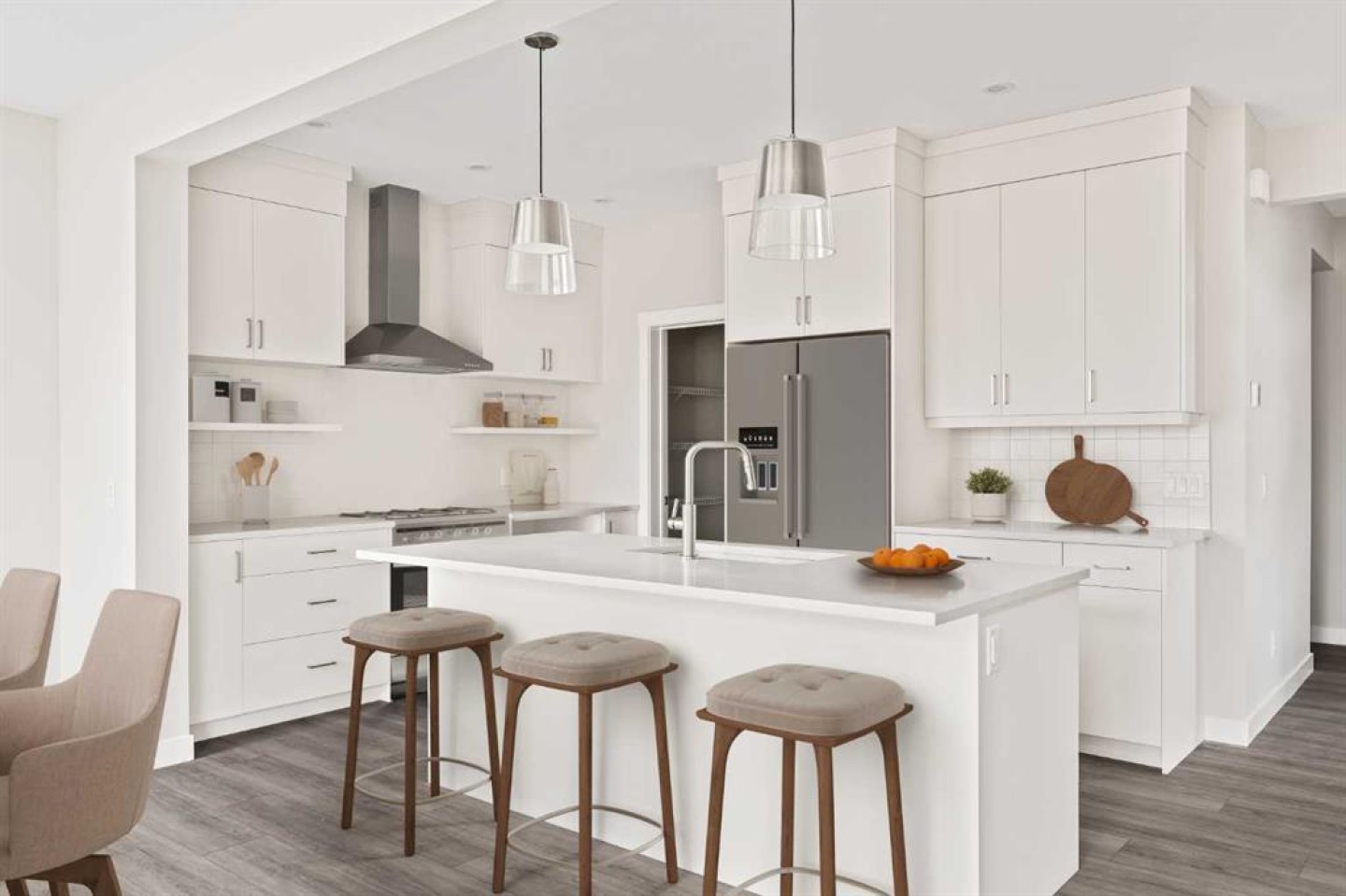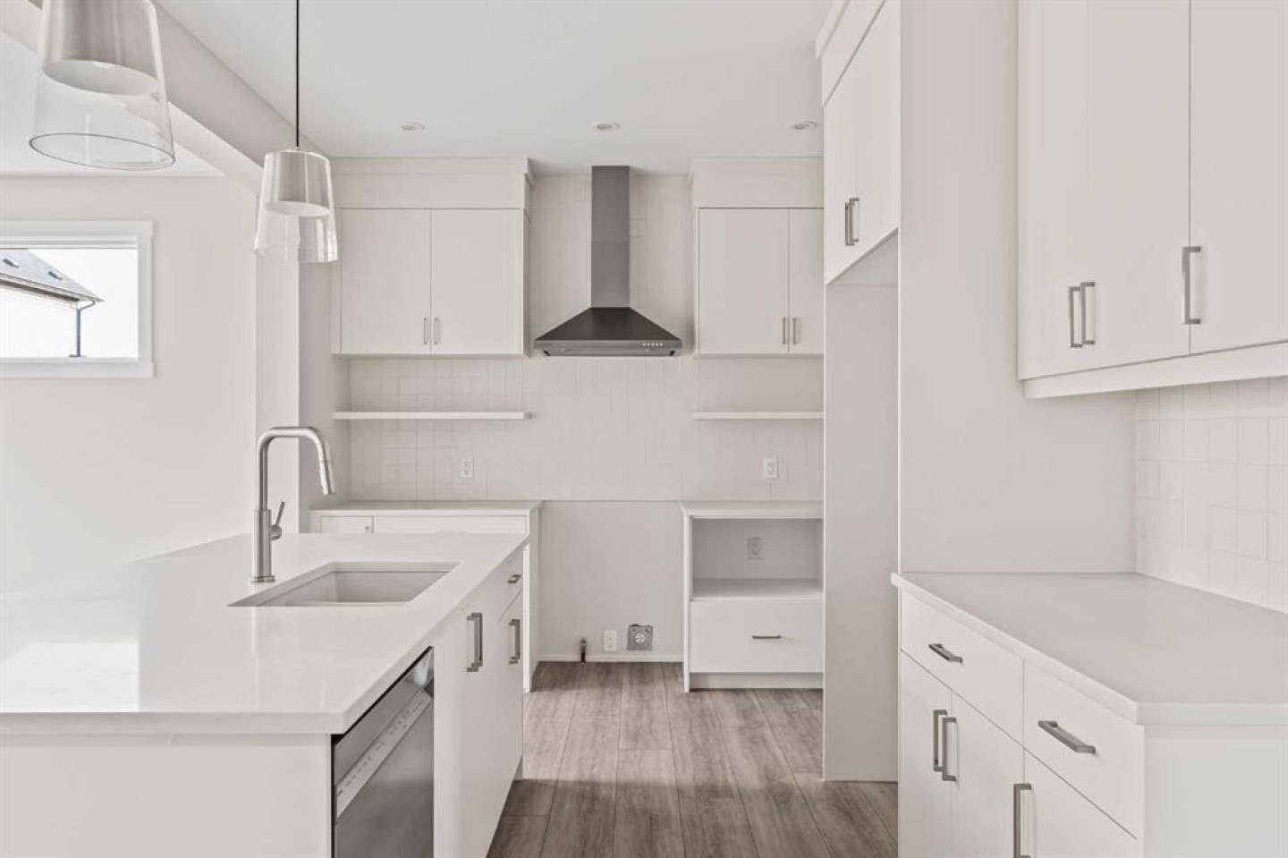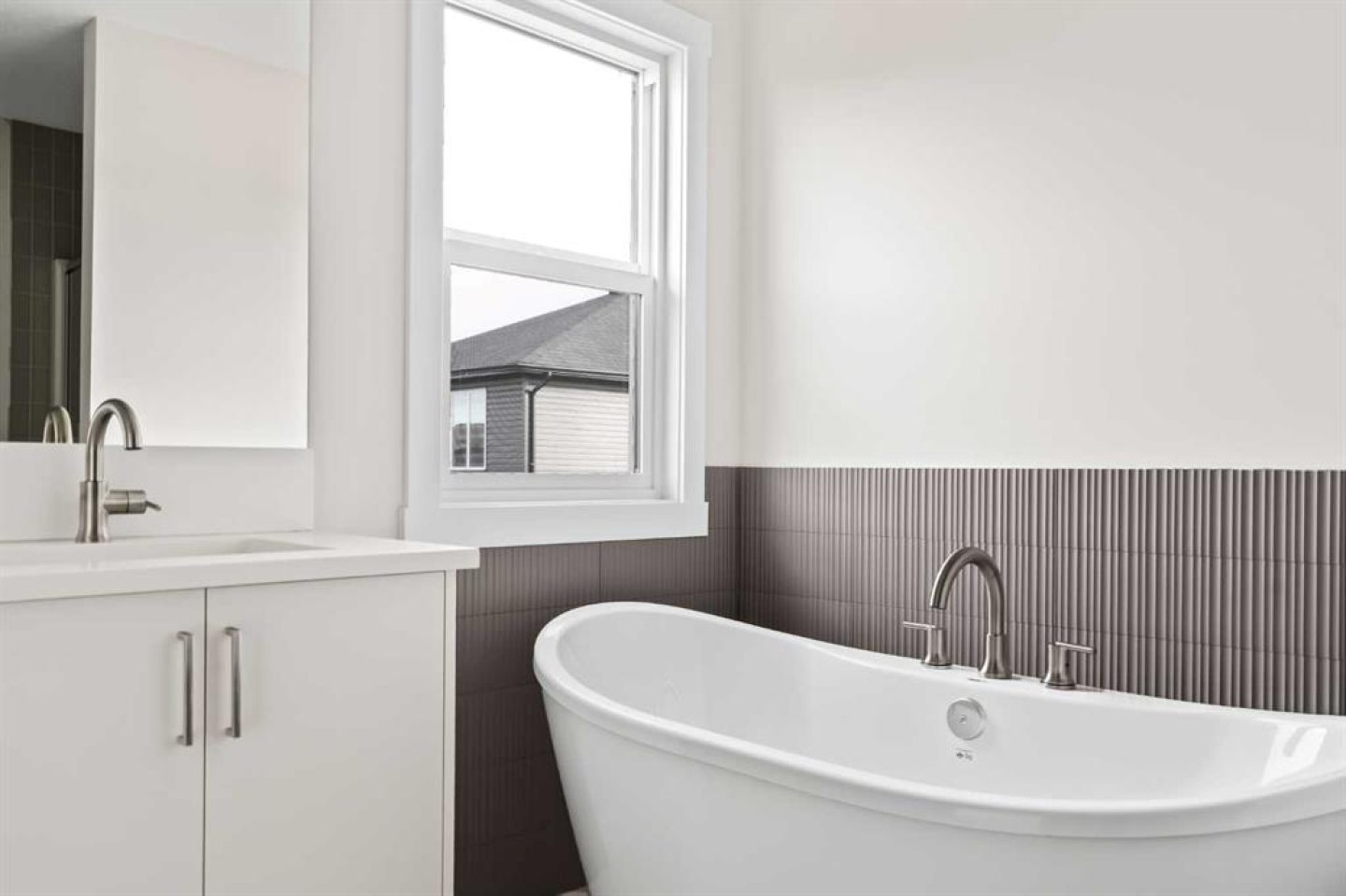 This stunning brand-new home by Brookfield Residential is move-in ready and perfectly situated in the vibrant community of Chinook Gate in Airdrie. Thoughtfully designed, the Rundle 26 offers the ideal blend of everyday comfort and elevated living with expansive living spaces, 3 bedrooms, 2.5 bathrooms, and an undeveloped basement featuring bathroom rough-ins and a separate side entrance for future development potential. The heart of the home is the beautifully appointed chef-inspired kitchen, showcasing timeless white cabinetry, light quartz countertops, floating shelves and a suite of stainless steel appliances including a built-in chimney hood fan and microwave. A large island anchors the space while the walkthrough pantry connects seamlessly to the mudroom and double attached garage - a layout designed for real life convenience. Open to both the dining area and great room, the main floor is perfectly suited for entertaining and family living. A central gas fireplace in the main level great room is the perfect addition for cozy winter nights. A wall of windows across the back of the home floods the home with natural light, while patio doors lead directly to the backyard - ideal for summer evenings. The backyard already has a gas line rough-in for a BBQ, adding to everyday convenience. Natural wood and spindle railings guide you to a central bonus room that thoughtfully separates the primary retreat from the secondary bedrooms. The spacious primary suite features a spa-inspired 5-piece ensuite with dual vanities, a soaker tub, a fully tiled walk-in shower, and a generous walk-in closet. Two additional bedrooms, a full bathroom, convenient upper-floor laundry, and ample storage complete the level. The nearly 800 sq. ft. basement offers endless possibilities - whether you envision a recreation space, additional bedrooms, a home gym, or something else, the options are endless for a growing family. Set on a bright lot, this home offers the perfect combination of indoor comfort and outdoor enjoyment. Backed by both the Builder Warranty and Alberta New Home Warranty, you can purchase with complete confidence. Move-in ready and beautifully finished, the Rundle 26 in Chinook Gate presents an exceptional opportunity for families seeking space, functionality, and the advantages of brand-new construction in one of Airdrie’s most exciting communities.