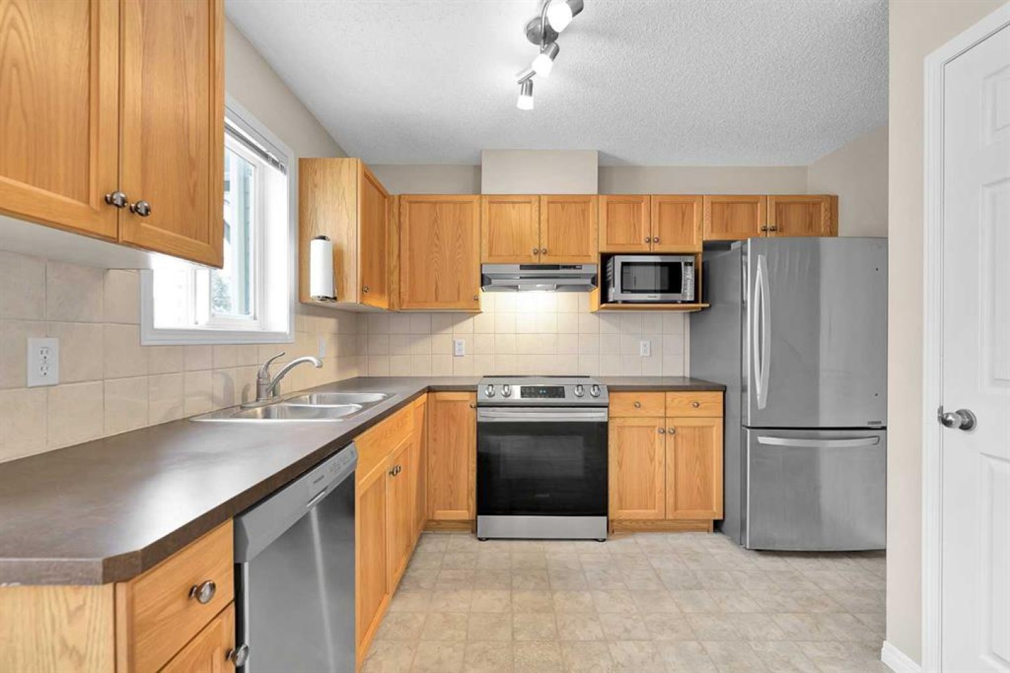 Dishwasher, Dryer, Electric Stove, Microwave, Range Hood, Refrigerator, Washer, Window Coverings