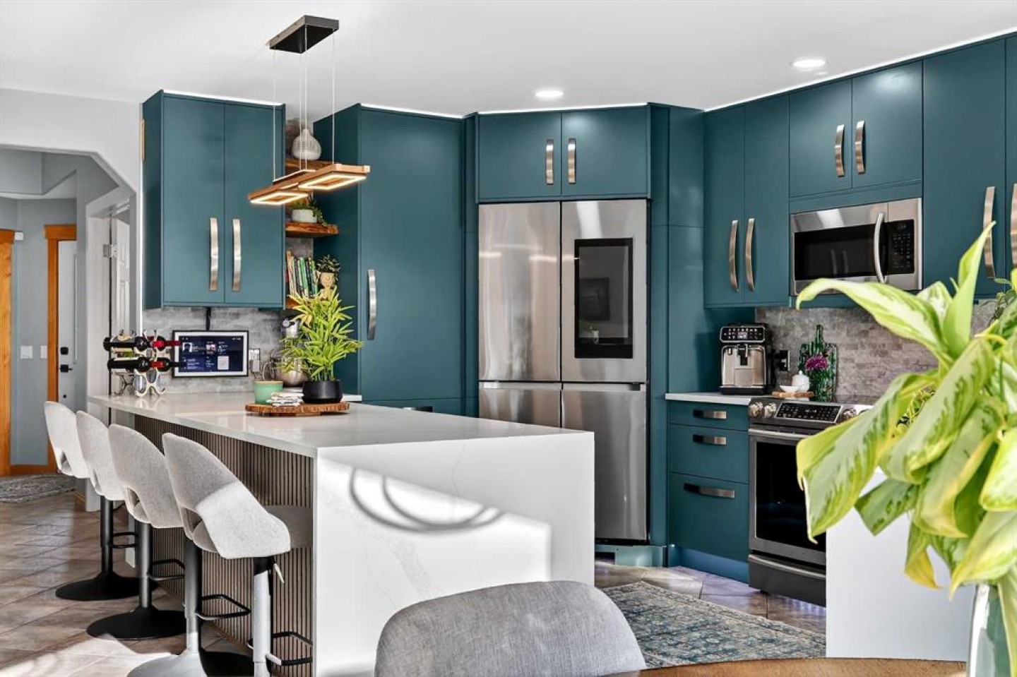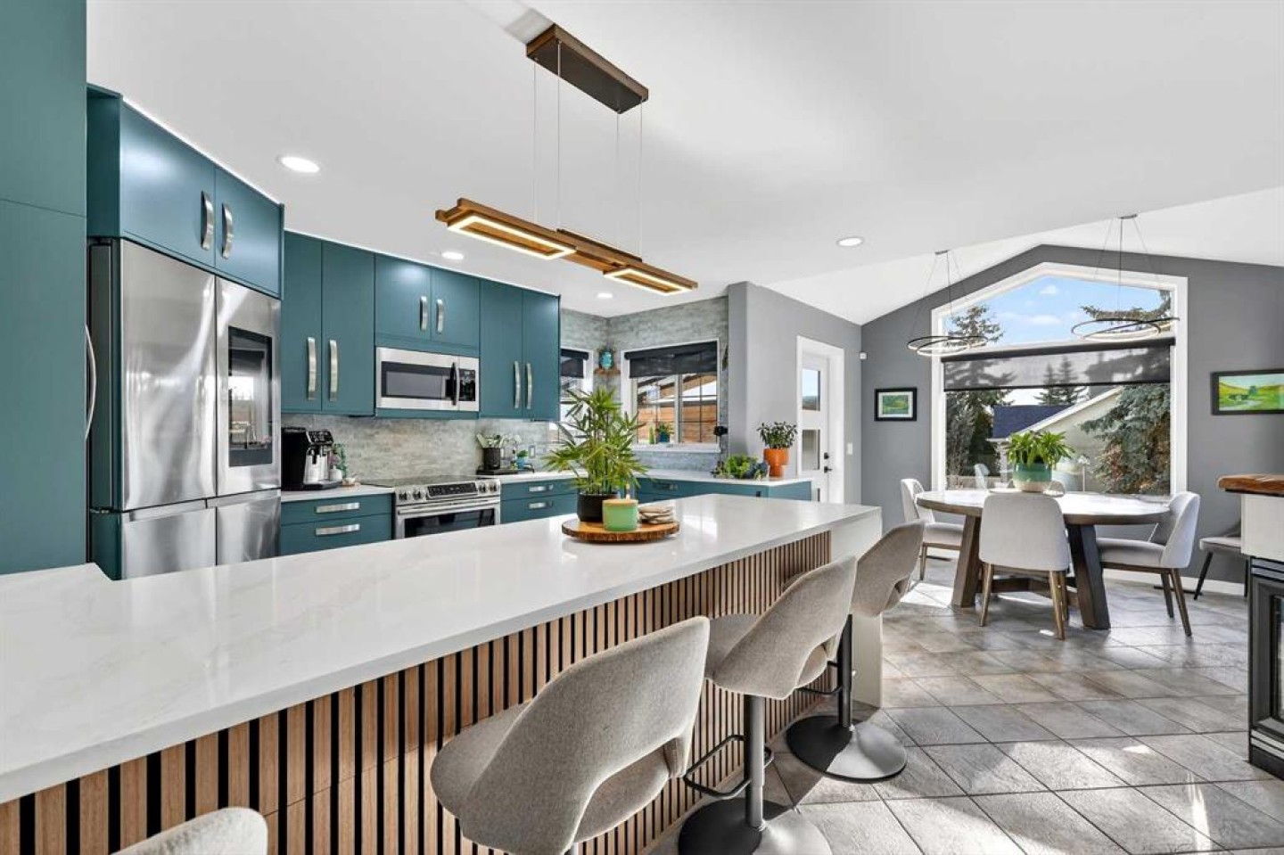 Welcome to the heart of sought-after Somerset in Southwest Calgary, where timeless charm meets inspired modern design. Situated on a generous lot in this established & mature neighbourhood, this meticulously maintained & extensively updated two-storey home offers over 2,700 sq. ft. of beautifully developed living space—delivering the perfect balance of classic community living & contemporary refinement. Step inside & you’re welcomed into a home that has been thoughtfully curated from top to bottom. Vaulted ceilings, sunken living room & a striking three-sided fireplace adorned with a one-of-a-kind walnut mantle create warmth & architectural interest. Every detail reflects intentional design & pride of ownership. The fully renovated kitchen is truly the heart of the home—timeless in style & exceptional in function. Featuring ceiling-height cabinetry, extended waterfall quartz countertop with shiplap detailing, designer lighting, under-cabinet illumination & a sleek stainless steel appliance package including an induction stove & high-tech refrigerator—this space is equal parts beauty & performance. New vinyl flooring & carpet flow seamlessly throughout while the fresh flat-finish ceilings elevate the main level’s modern aesthetic. A bright main-floor office offers the perfect work-from-home setting, while the renovated laundry room impresses with custom built-ins, shiplap accents, a folding counter & 2024 washer and dryer. Even the powder room has been elevated with a stylish vanity, smart toilet & designer storage solutions. Upstairs, a spectacular media room awaits—complete with a feature fireplace, custom built-in wall, hidden electronic room & sleek sliding door for added privacy. 3 bedrooms feature new flooring & paint, while the fully renovated main bath showcases modern finishes & thoughtful design. The primary retreat is nothing short of stunning. Vaulted ceilings, beautiful skylight & walk-in closet complement the spa-inspired ensuite renovation—floor-to-ceiling tile, rain shower with built-in bench & niche, penny tile shower floor, LED-lit mirrors, & under-vanity lighting. It’s a private sanctuary designed for relaxation. The fully finished basement extends your living space with a large recreation room, 4th bedroom with walk-in closet & a full bathroom. Two newer Rheem hot water tanks and a meticulously maintained utility space further reflect the exceptional care invested in this home. Step outside & prepare to fall in love. The backyard is an entertainer’s dream featuring a fully covered built-in BBQ area, a lower deck with pergola & bistro lighting, extensive stonework, stamped concrete pathways, designated patio with gas firepit, pondless waterfall, smart exterior lighting system & a sizeable storage shed. A new Class 4 hail-resistant roof with high-profile ridge cap adds both peace of mind & value. This is truly the best of both worlds. A traditional lot in a beloved established community, paired with the fresh sophistication of a modern renovation.