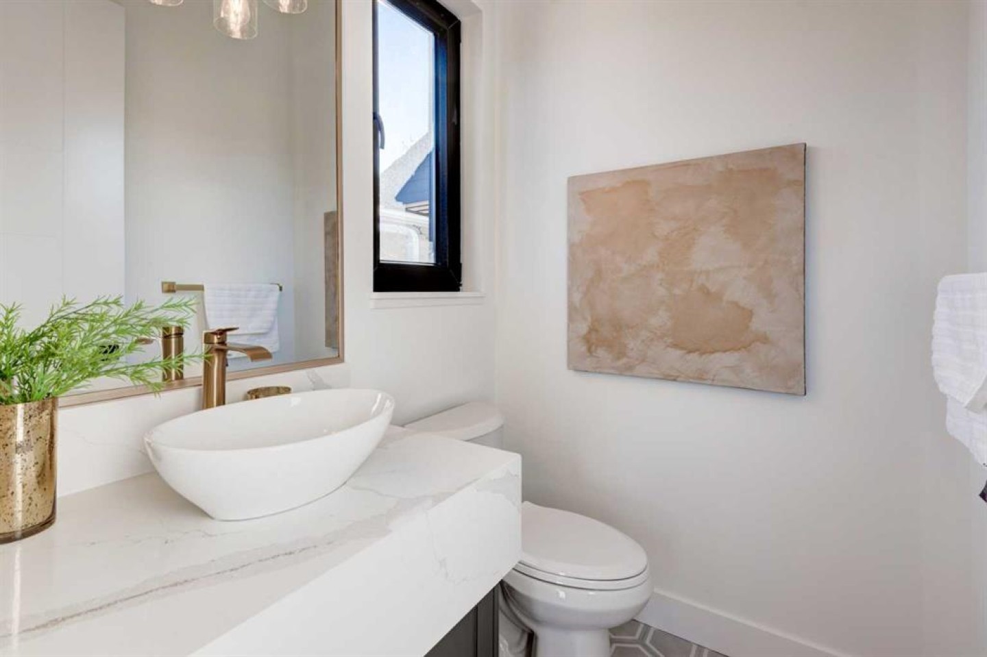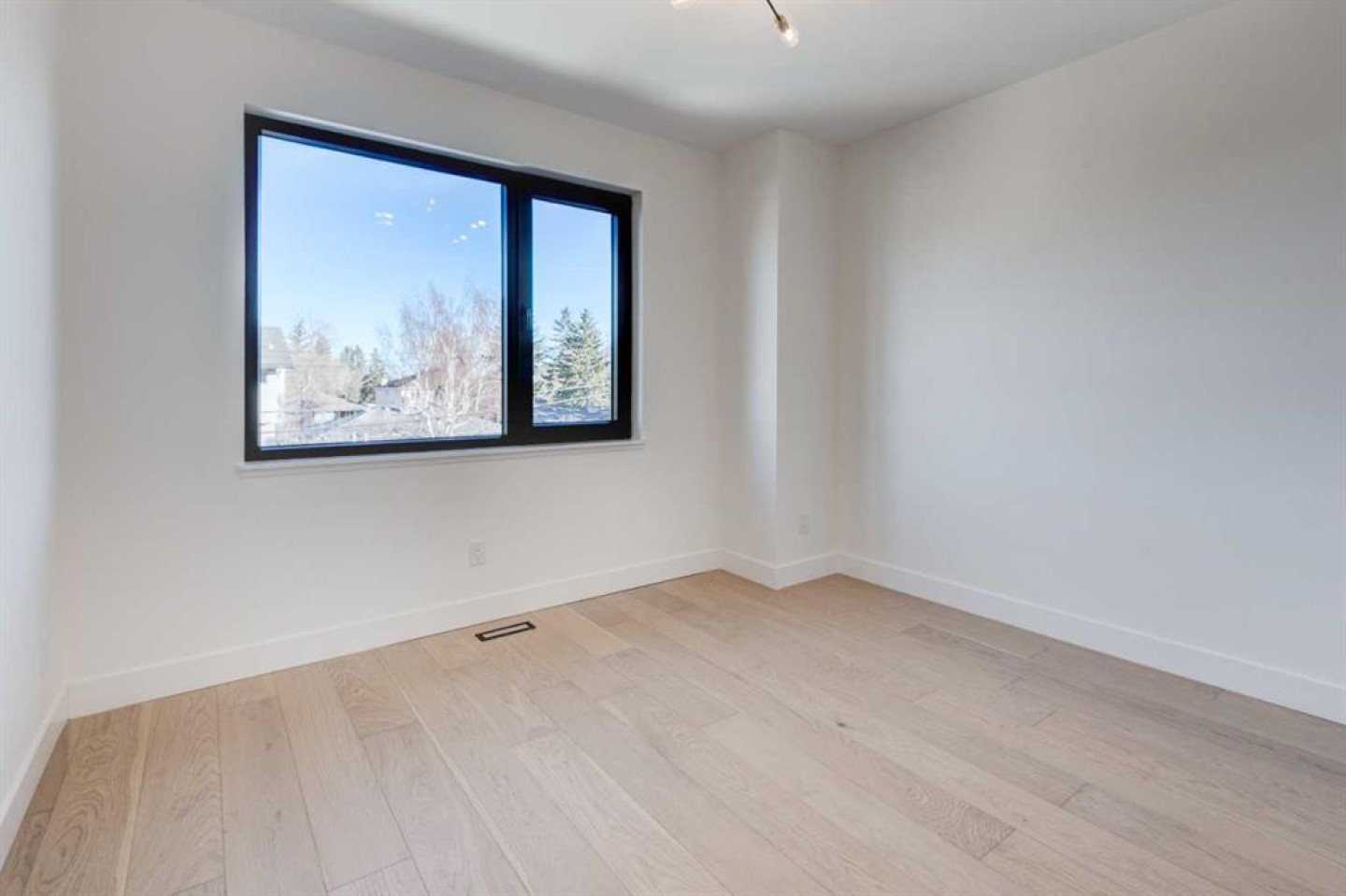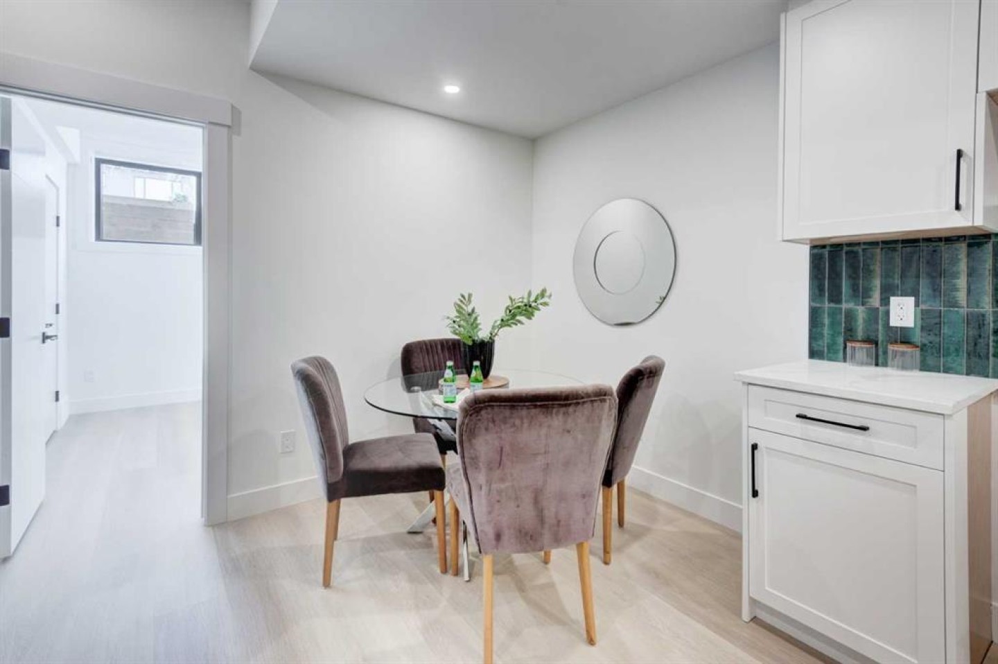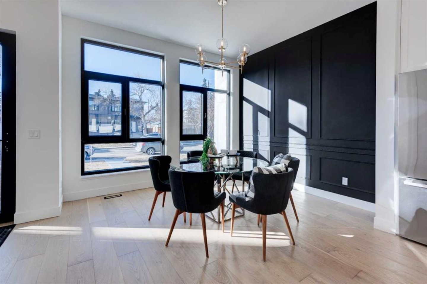 Welcome to 3716 44 Street SW, a brand-new, beautifully designed duplex with a fully legal basement suite located in the highly desirable community of Glenbrook. This thoughtfully built home offers over 2,600 sq. ft. of professionally developed living space and is perfectly suited for families, professionals, or investors seeking modern inner-city living with income potential. Built with quality craftsmanship and attention to detail, the property comes complete with comprehensive New Home Warranty coverage, providing peace of mind and long-term value. From the moment you arrive, the contemporary exterior design makes a strong first impression with clean architectural lines, large windows, and modern finishes that blend seamlessly into the neighborhood. The landscaped front approach welcomes you into a bright and functional interior designed for everyday living and entertaining. The main floor features a spacious open-concept layout and wide-plank engineered hardwood flooring that enhances the sense of space and warmth throughout. The front living area is highlighted by an elegant fireplace feature wall and oversized windows that allow natural light to pour in, creating an inviting atmosphere. The dining area transitions effortlessly into a stunning chef-inspired kitchen that serves as the heart of the home. Complete with quartz countertops, custom cabinetry, soft-close drawers, under-cabinet lighting, premium stainless steel appliances, and a large central island, this kitchen provides ample prep space and seating for casual dining or entertaining guests. The thoughtful layout ensures both style and functionality, making it ideal for hosting gatherings or enjoying family meals. A well-appointed two-piece powder room completes the main level. Upstairs, you will find three generously sized bedrooms, each offering privacy and comfort. The primary bedroom is designed as a luxurious retreat featuring a spacious walk-in closet and a spa-inspired ensuite complete with dual vanities, a freestanding soaker tub, a fully tiled glass shower, and heated flooring in the ensuite bathroom for added comfort during colder months. The additional bedrooms are well-proportioned and ideal for family members, guests, or home office use. Convenient upper-level laundry adds to the practicality of the layout. One of the most valuable highlights of this property is the fully developed legal basement suite, built to city standards with a separate private entrance. The suite includes its own modern kitchen, comfortable living area, spacious bedroom, full bathroom, dedicated laundry. Whether used as a mortgage helper, rental income opportunity, or private space for extended family, the legal suite significantly enhances the versatility and financial appeal of the home. This property has been constructed with comfort and efficiency in mind, incorporating energy-efficient windows, modern insulation