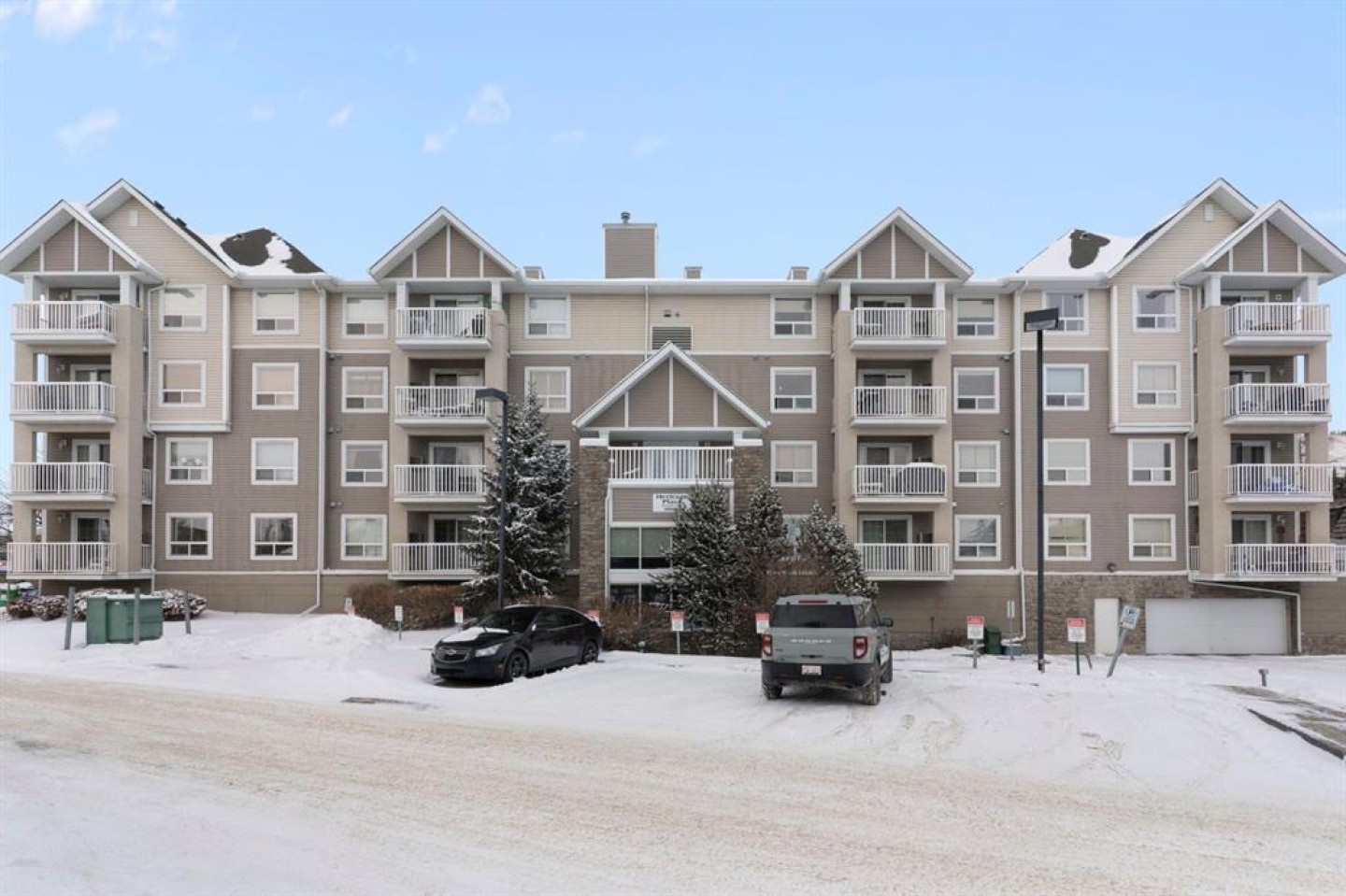 Experience the perfect blend of comfort and convenience in this meticulously maintained 2-bedroom, 2-bathroom condo located in the highly walkable East End of Cochrane. Positioned on the third floor, this unit is bathed in natural light all day long thanks to its prime south-facing exposure and private balcony—the perfect spot for your morning coffee or afternoon sun. Step inside to a bright, open-concept floor plan designed for modern living. The functional "butterfly" layout maximizes privacy by placing the living area in the center, with a bedroom and bathroom on each side. The Primary bedroom features a walk-in closet and a private 4-piece ensuite bathroom. The kitchen boasts newer appliances, including a high-end electric stove with induction cooktop. This unit features dedicated in-suite laundry with a brand-new washer and dryer set, plus an additional freezer in the pantry/laundry room for extra storage. Stay cozy by the gas fireplace, which was recently serviced and comes with a brand-new remote control. Enjoy vinyl plank flooring throughout (no carpet!) and a fresh coat of professional paint. This unit includes underground titled parking and an assigned storage unit, ensuring your vehicle stays warm and your gear stays organized. Condo fees are inclusive of heat and water! Location is everything. You are within easy walking distance to Cochrane’s boutique shops, local restaurants, entertainment, and the town’s stunning pathway system. Heritage Place is one of Cochrane's most welcoming complexes, offering amenities that foster a true sense of community with social spaces including a cozy front entrance gathering area, a library, and a social room with a full kitchen for hosting events, and the building offers plenty of visitor parking for your guests.