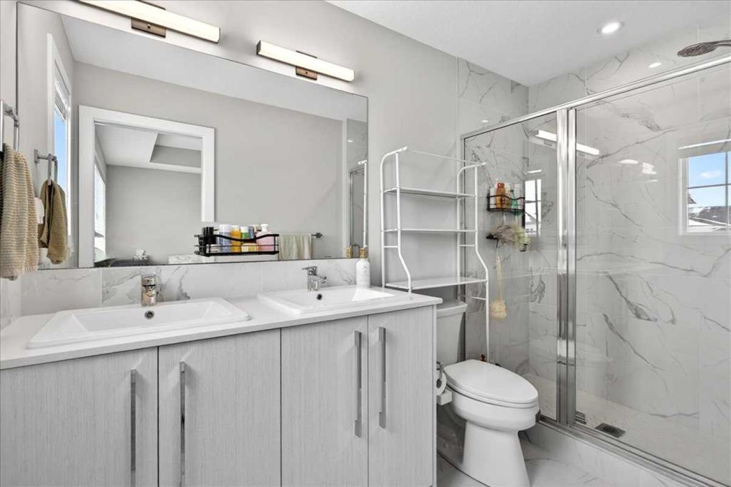 Welcome to this stunning Dove II Duplex Floor Plan by Truman Homes! This beautifully designed 2-storey side-by-side| 1,788.61 sq ft of thoughtfully planned living space| Complete with a legal basement suite| 4 bedrooms| 3 full baths/1 half bath| 9 ft ceilings| Double detached garage| Paved back lane| This home blends style, function, and flexibility. An incredible layout for investors and homeowners alike — live comfortably on the upper two levels while generating rental income from the legal suite or create the perfect multi-generational setup with space for extended family. The possibilities are endless. Inside, you’ll find luxury vinyl flooring throughout most of the home, floor-to-ceiling cabinetry, quartz countertops, and soft-close doors and drawers, all combining elegance with everyday practicality. Aluminum-clad, low-maintenance dual-pane windows enhance efficiency and durability. Comfort is top of mind with a high-efficiency gas furnace, General Aire drip humidifier, and heat recovery ventilator. Enjoy outdoor living with two gas barbecue lines — one on the upper deck and one conveniently located for the lower suite occupant. Bright, beautiful, and exceptionally functional on every level, this home truly stands out. The legal suite is one of the most spacious and well-designed layouts available, offering both comfort and privacy. The utility room is separately positioned and shared between tenants for easy access. The double detached garage also features added storage with built-in shelving along one side. A rare opportunity that perfectly balances modern design, income potential, and everyday livability!
