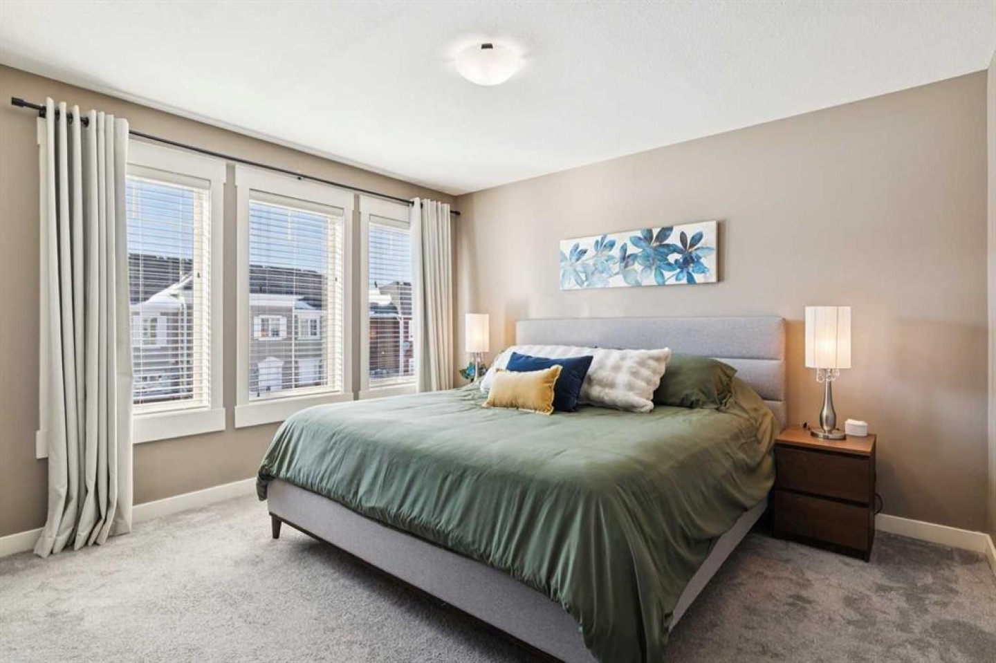 END-UNIT | 3 BEDROOMS | FINISHED BASEMENT | 2 PARKING SPOTS | Welcome to this BRIGHT 3 bedroom end-unit townhome in the established community of RAINBOW FALLS. The main floor offers an OPEN CONCEPT layout designed for everyday living. Large windows bring in NATURAL LIGHT, and the spacious living and dining areas flow seamlessly into the kitchen — creating a layout that works beautifully for both quiet evenings and entertaining. The kitchen features STAINLESS STEEL APPLIANCES, a CENTRAL ISLAND with seating, PANTRY storage, and plenty of cabinetry to keep everything organized. Upstairs, the PRIMARY BEDROOM is a generous size and offers a WALK-IN CLOSET. Two additional bedrooms and a FULL 4-PIECE BATH provide flexibility for family, guests, or a home office. The FINISHED BASEMENT adds valuable living space with a LARGE REC ROOM — ideal for movie nights, a playroom, home gym…whatever you need. Laundry and storage are neatly tucked away with rough-in there if you want to add a future bathroom. UPDATES: Kitchen Countertop (2026), Carpet Basement Stairs (2026), Washer, Stove and Dishwasher (2023), Dryer and Hot Water Tank (2022). Step outside where you can enjoy morning coffee or summer BBQs. Two ASSIGNED PARKING STALLS are located directly out front, with ample VISITOR PARKING nearby. Set within walking distance to schools, playgrounds, pathways, shopping, and the OFF-LEASH DOG PARK — and just minutes to CHESTERMERE LAKE — this home offers the lifestyle buyers are looking for. Whether you’re a FIRST-TIME BUYER, young family, or investor, this MOVE-IN READY townhome checks the boxes.
